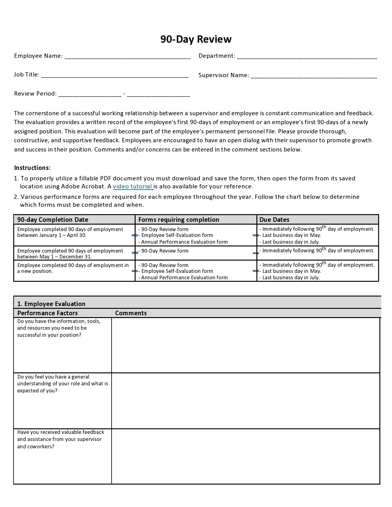 90 Day Employee Review Form