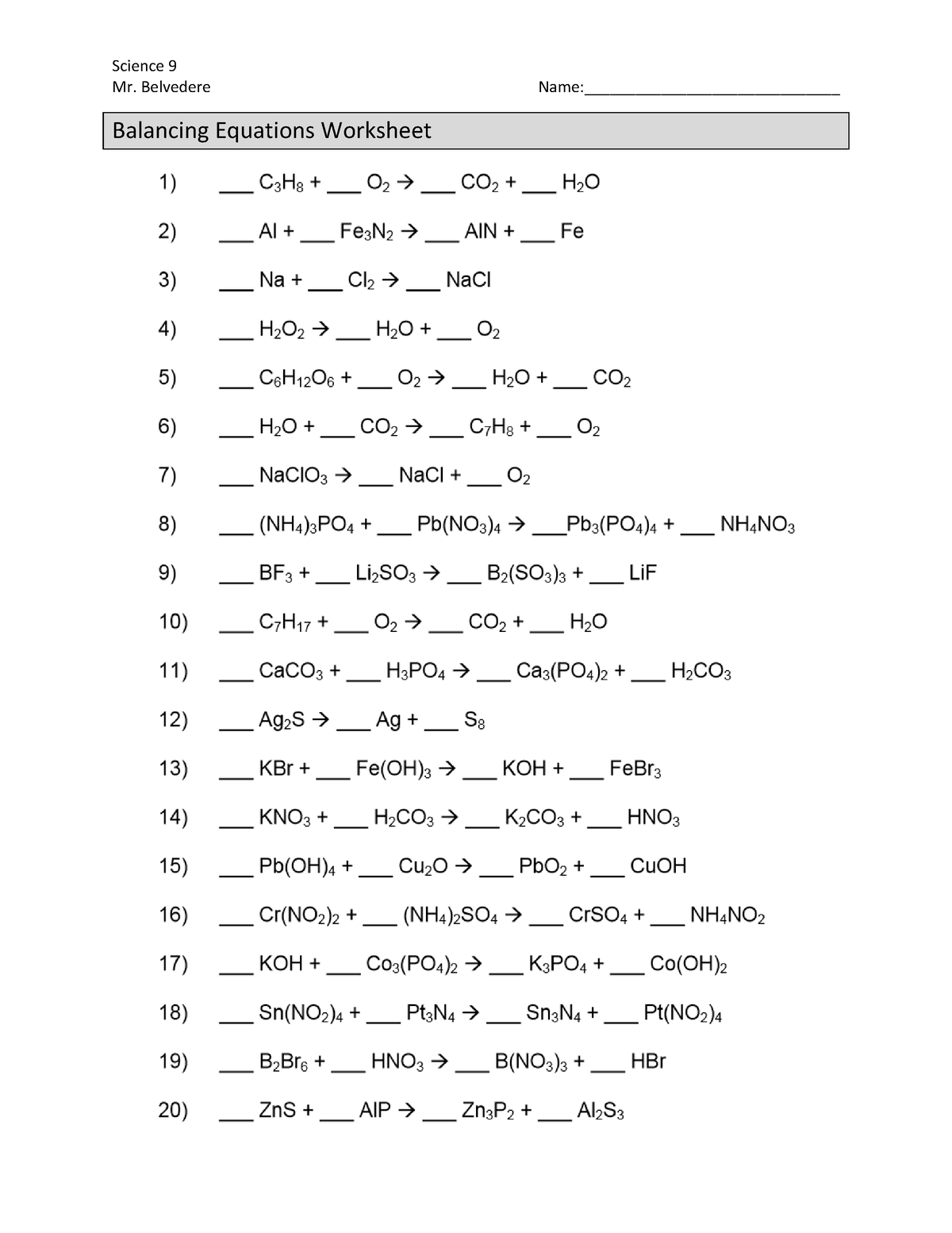 Balancing Equations WS Answers 11 12 13 Science 9 Mr Belvedere Studocu