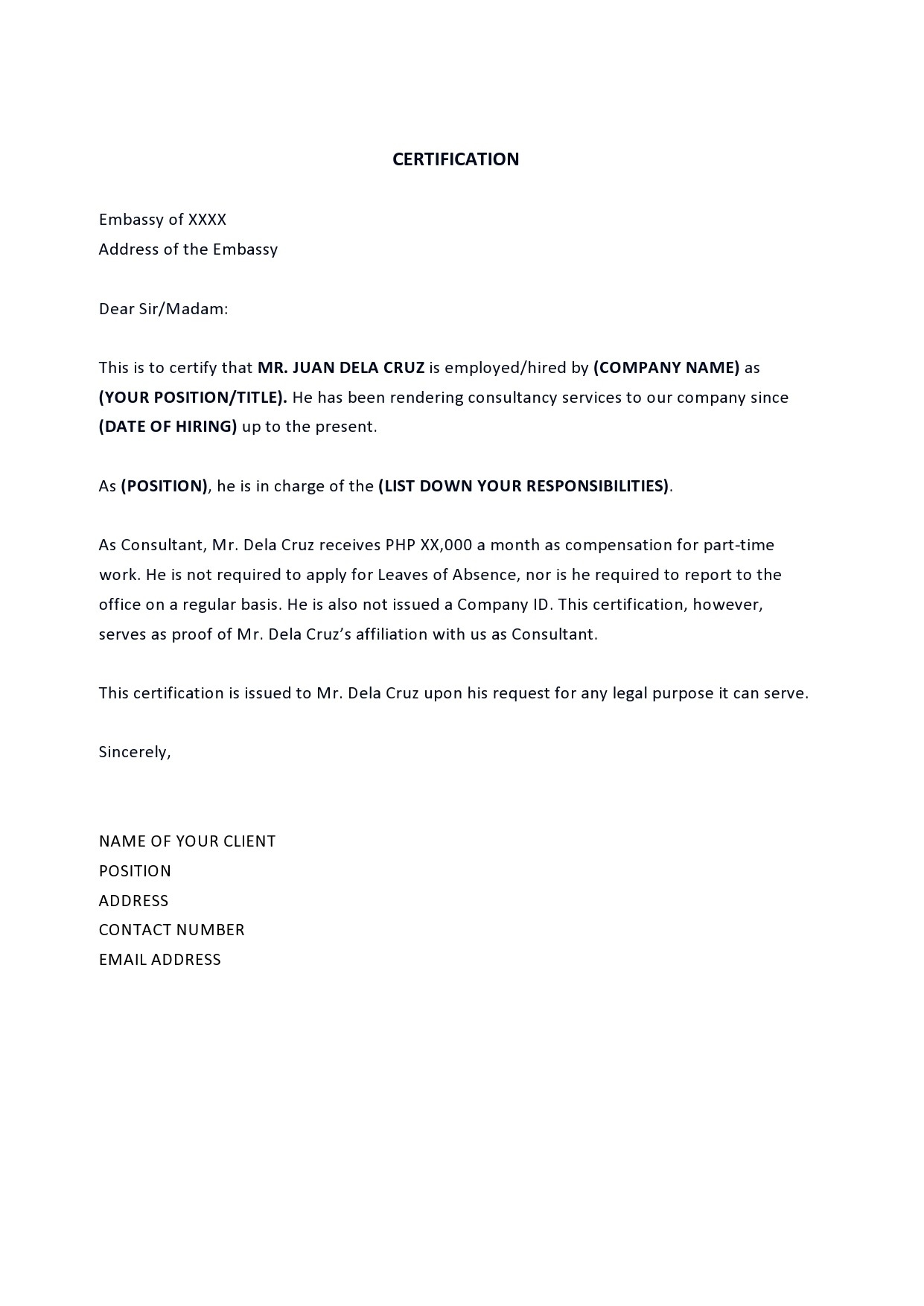 Certificate Of Employment With Compensation Format Sansu Pertaining To Sample Certi Letter Of Employment Employment Letter Sample Letter Of Employment Template
