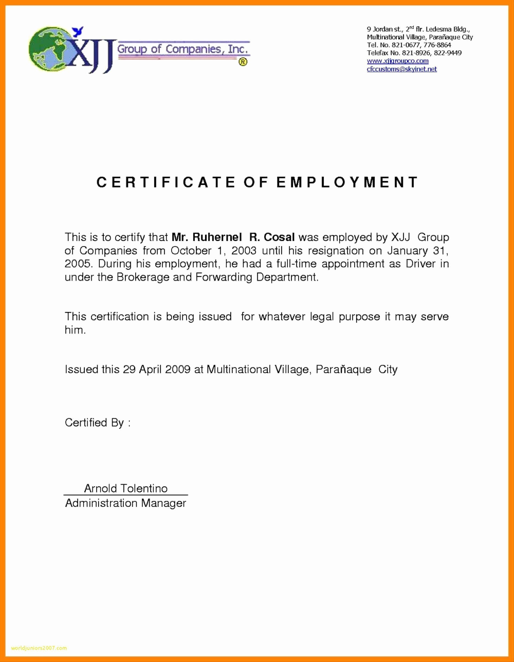 Employee Certificate Of Employment With Salary Luxury Employee In Employee Certificate Of S Letter Template Word Employment Letter Sample Certificate Templates
