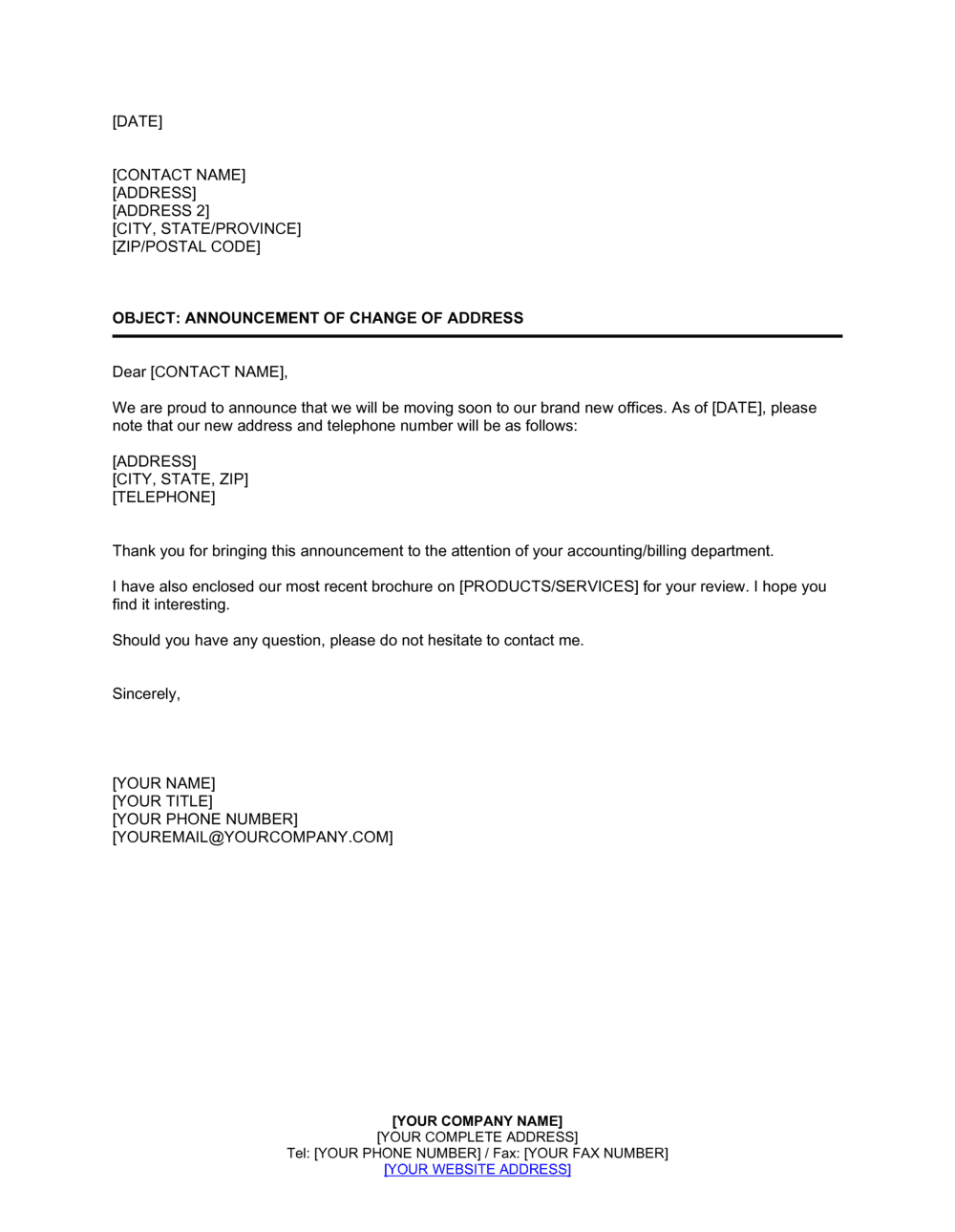 Free Printable Change Of Address Letter Templates PDF Word Business Vendors