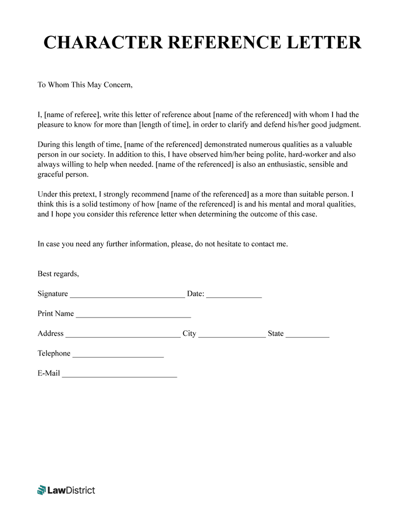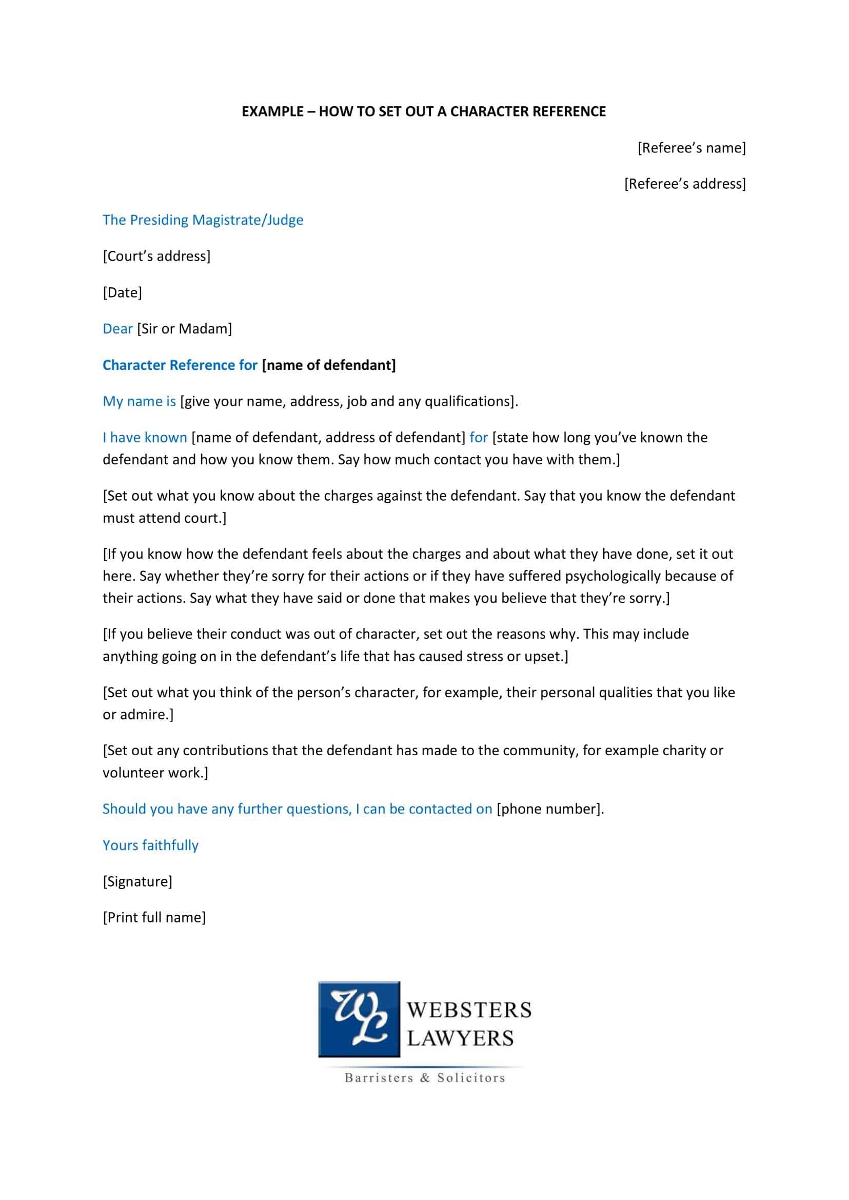 Character Reference Letter For Court Free PDF Word Template LawDistrict