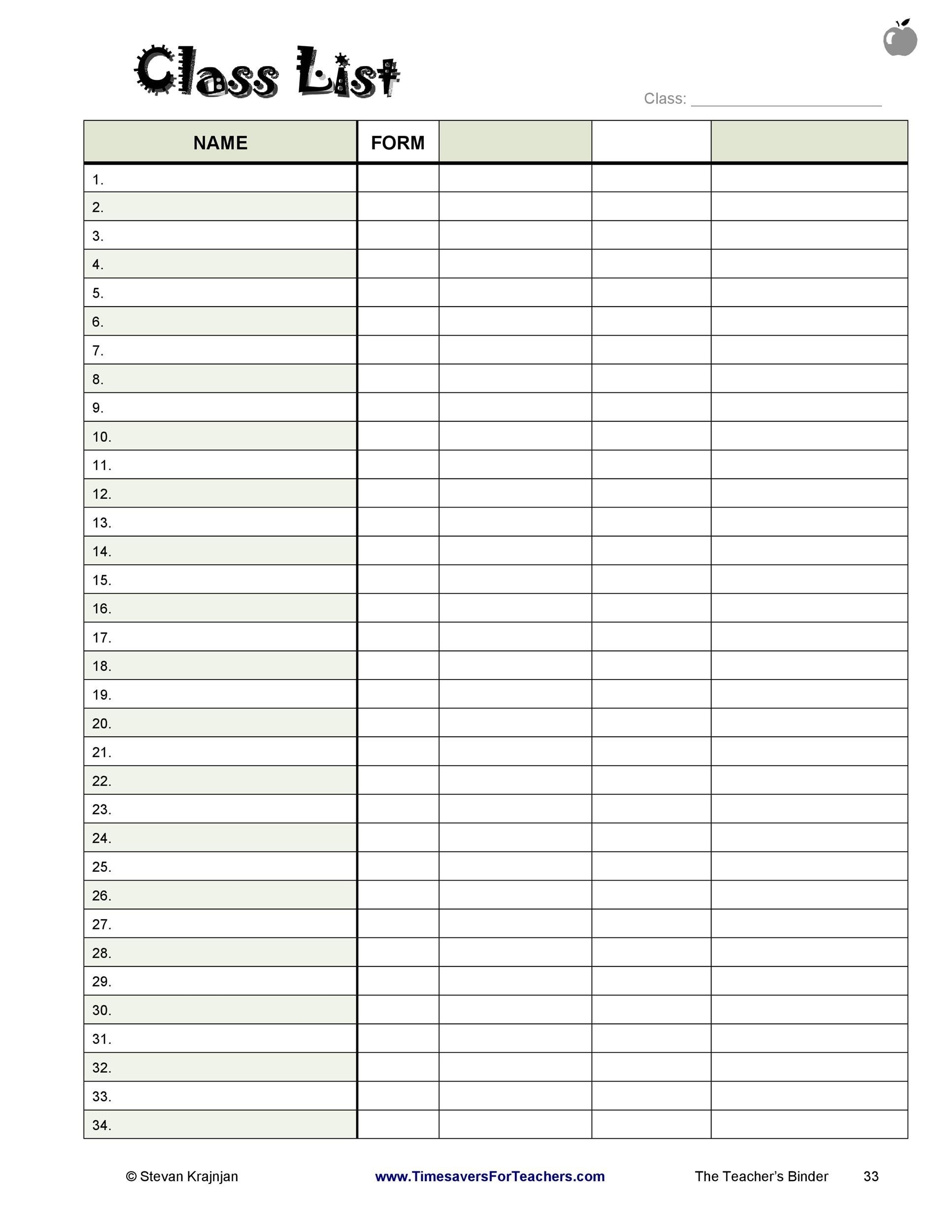 37 Class Roster Templates Student Roster Templates For Teachers