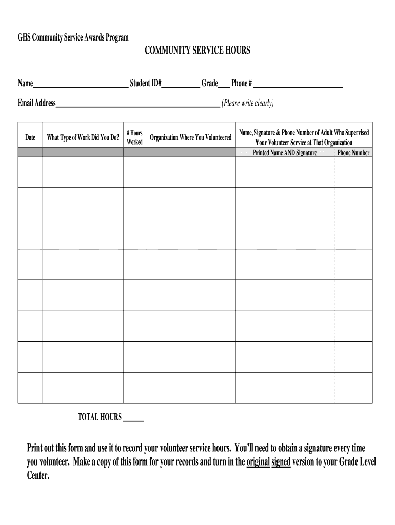 Community Service Hours Paper Fill Online Printable Fillable Blank PdfFiller