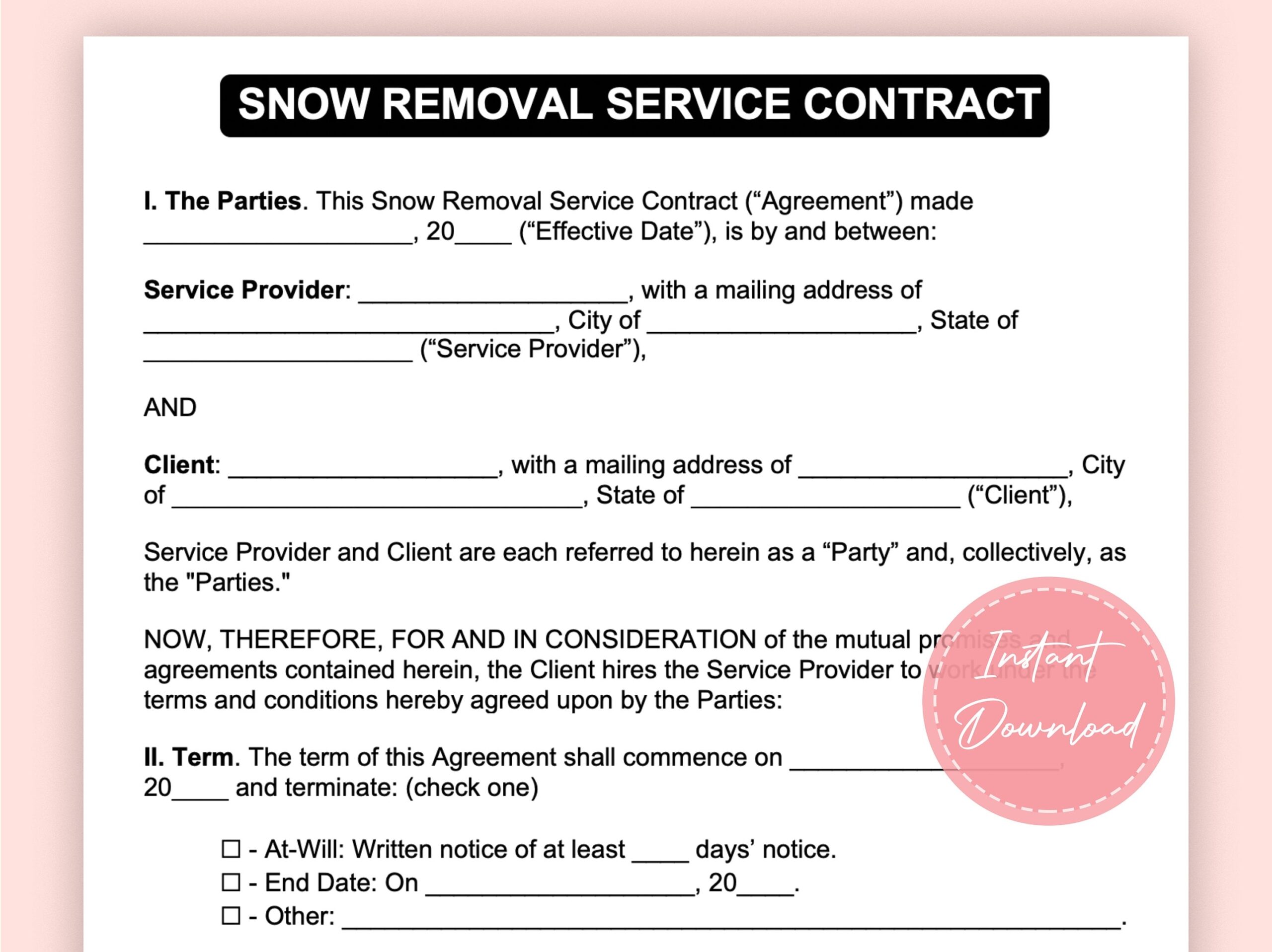 Contract For Snow Removal Services – A printable template is a pre-designed file or layout that you can tailor and use for numerous purposes. These templates are usually available in digital formats and can be printed or shared online.