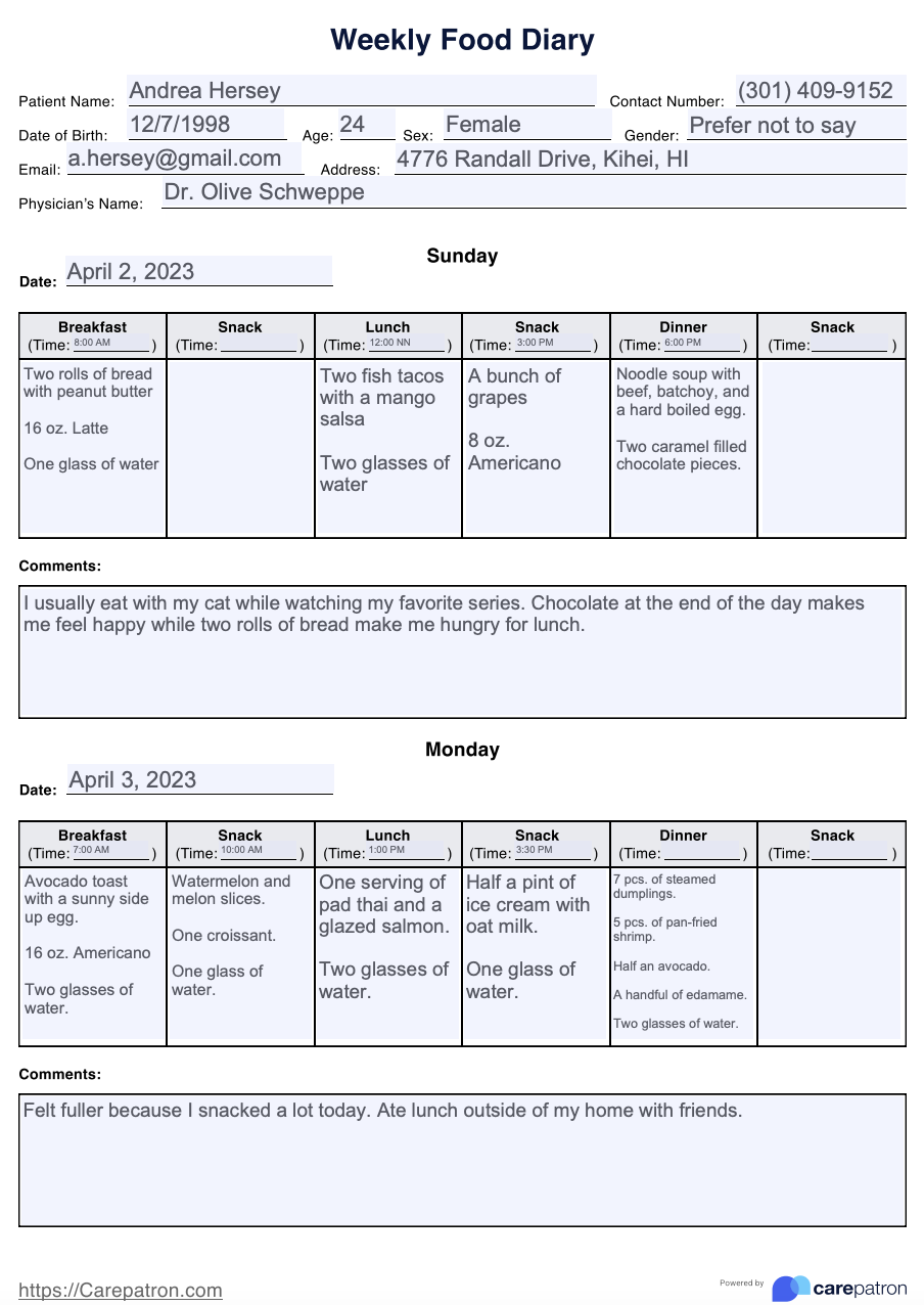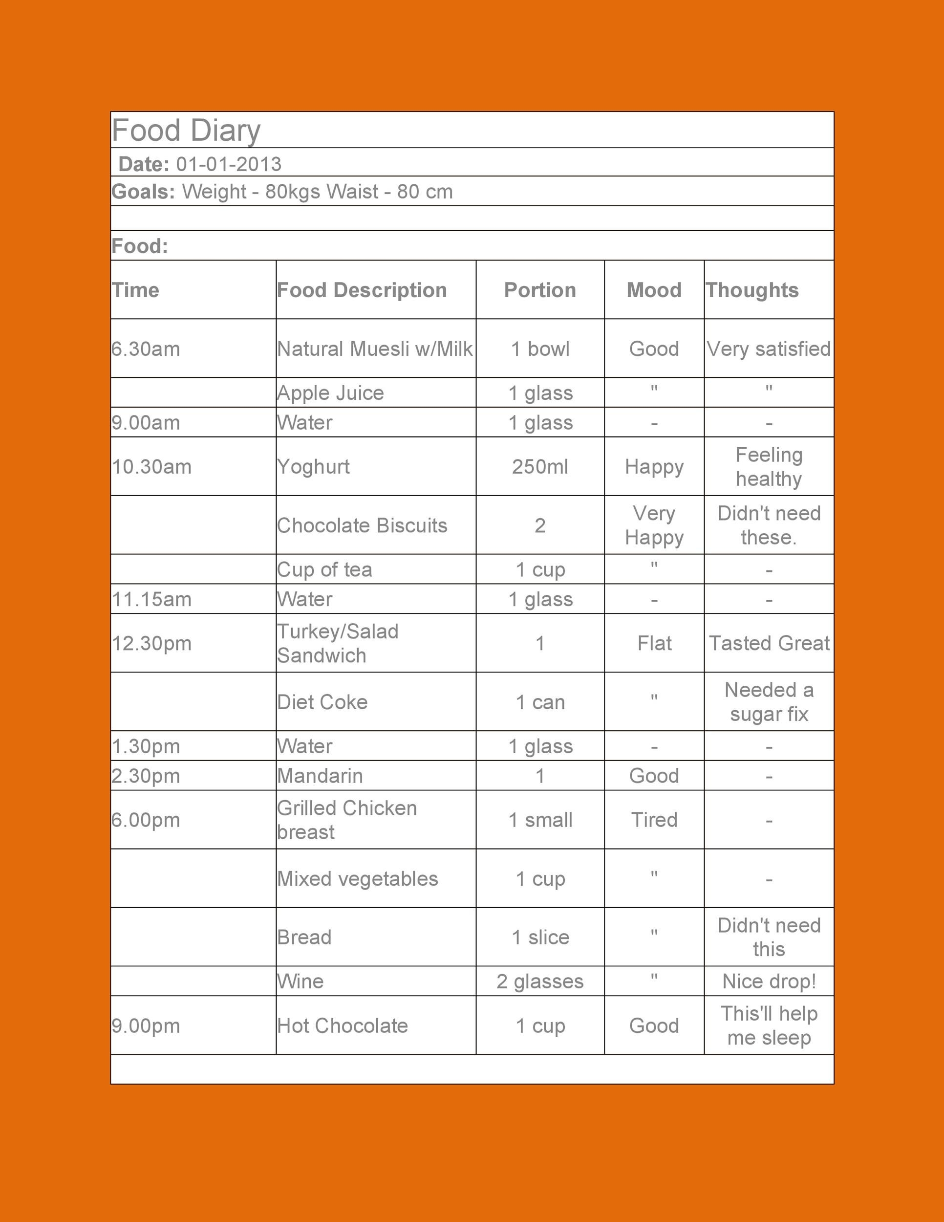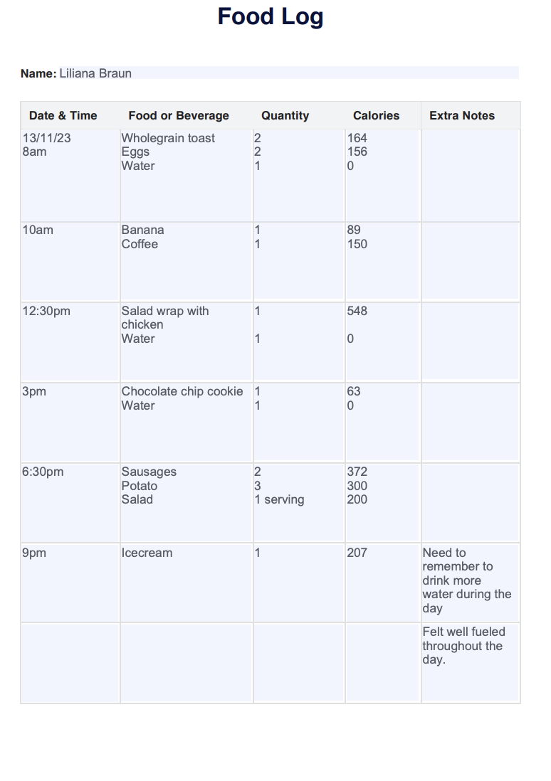 Daily Food Log Example With Answers
