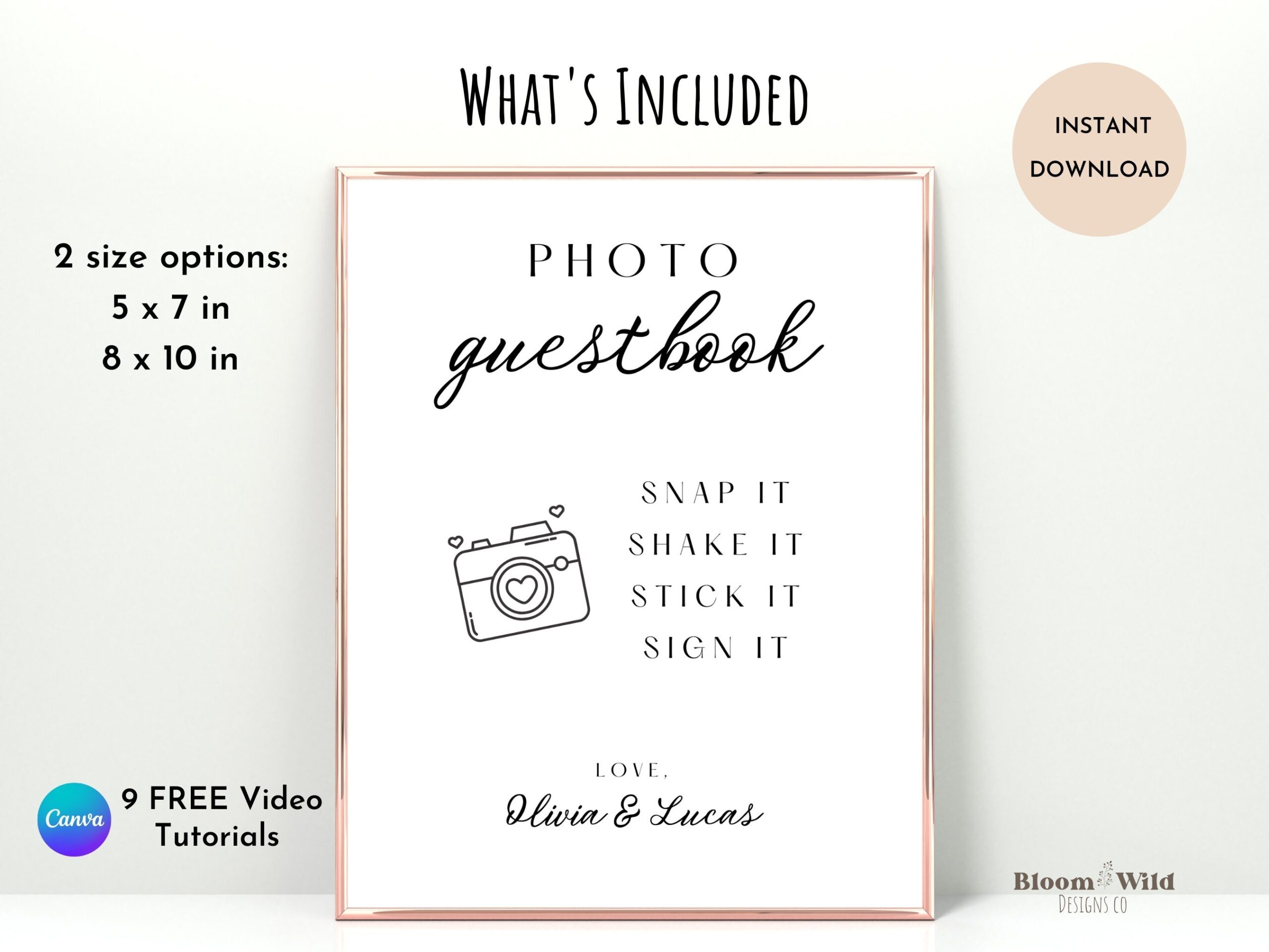 Polaroid Camera Guest Book Sign Minimalist Photo Guestbook Sign Wedding Photo Guestbook Sign Photo Guestbook Sign Printable Canva Edit Etsy