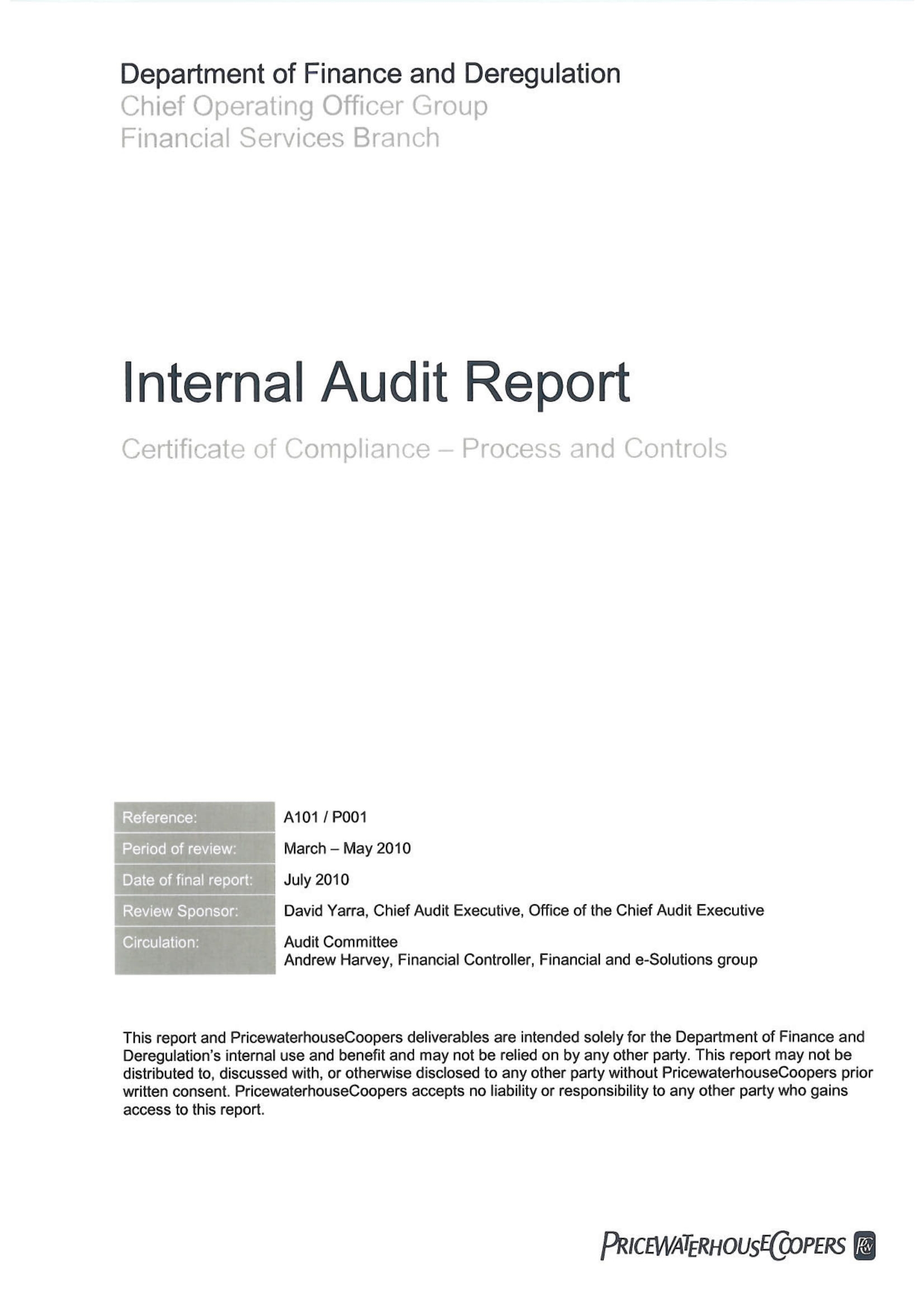 Example Of Internal Audit Report