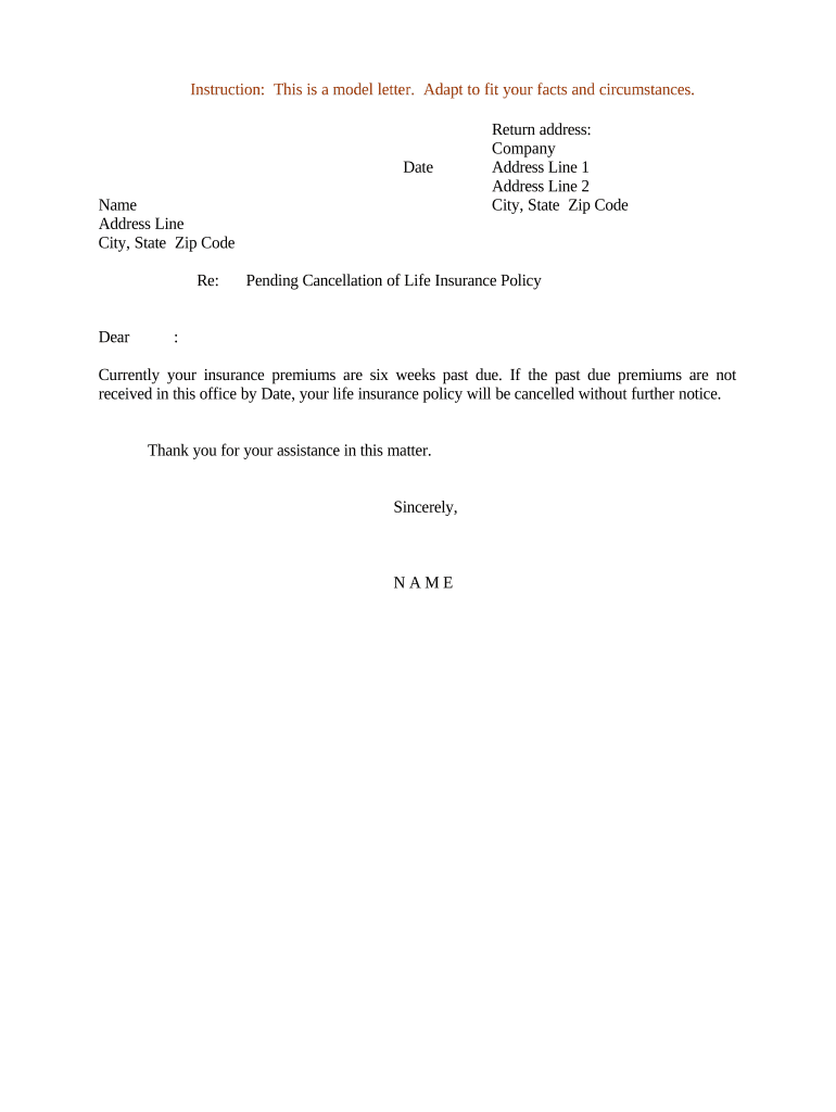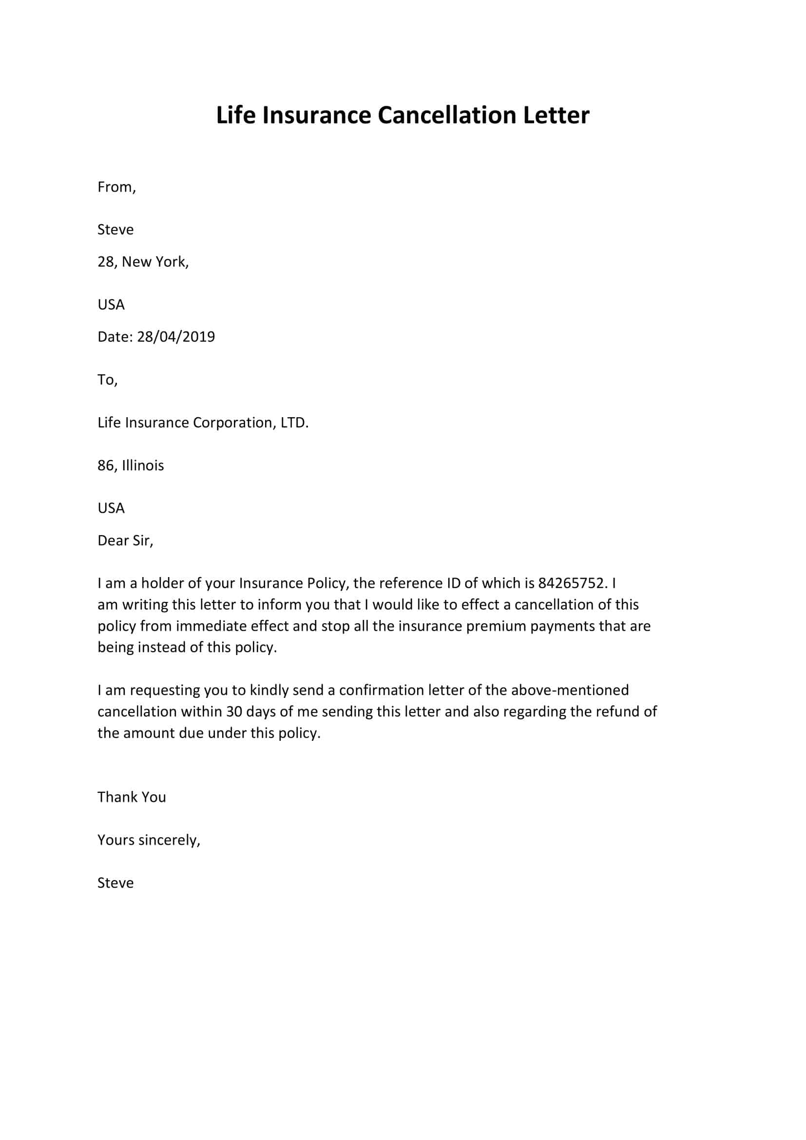 Form Letter To Cancel Insurance