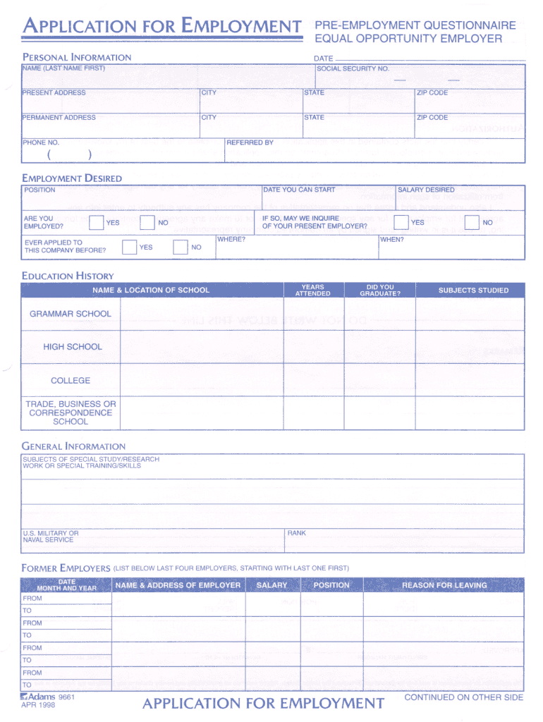 Free Application For Employment Pdf