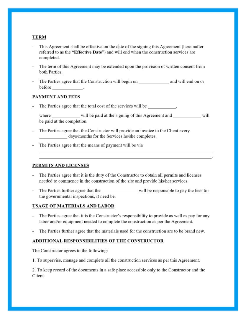 Free Construction Contracts Template