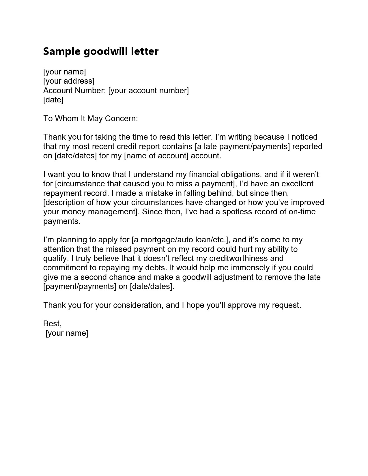 Free Goodwill Letter Template For Late Payment