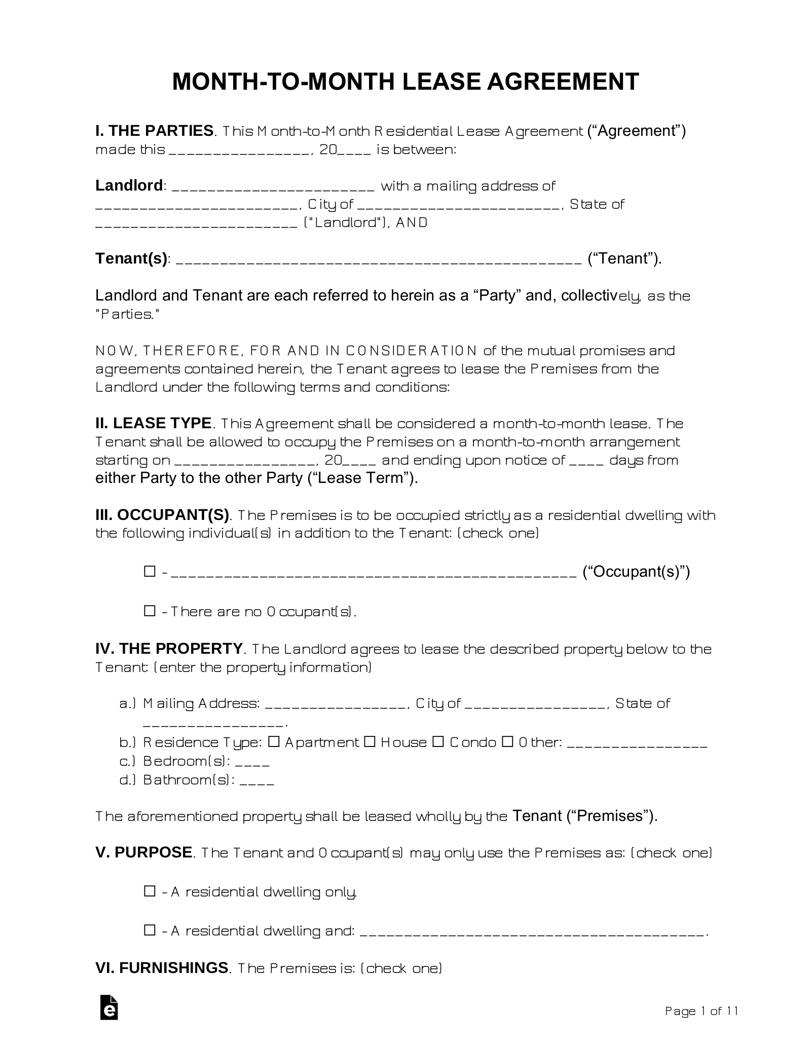 Free Month To Month Rental Agreement Template PDF Word EForms