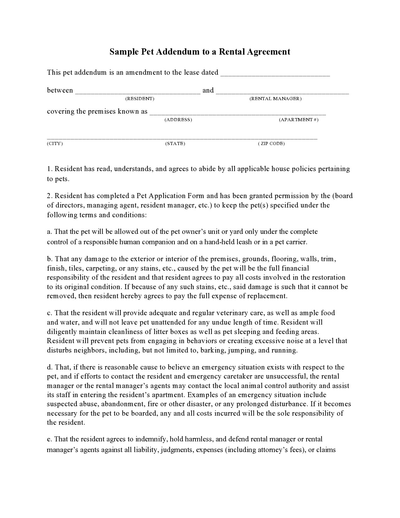 Free Pet Addendum To Rental Agreement