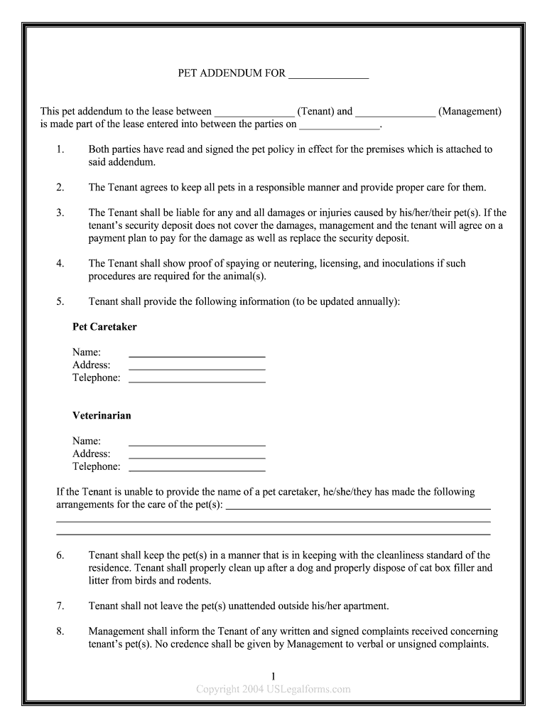 Fill And Sign The Sample Pet Addendum To Rental Agreementlease Template Form