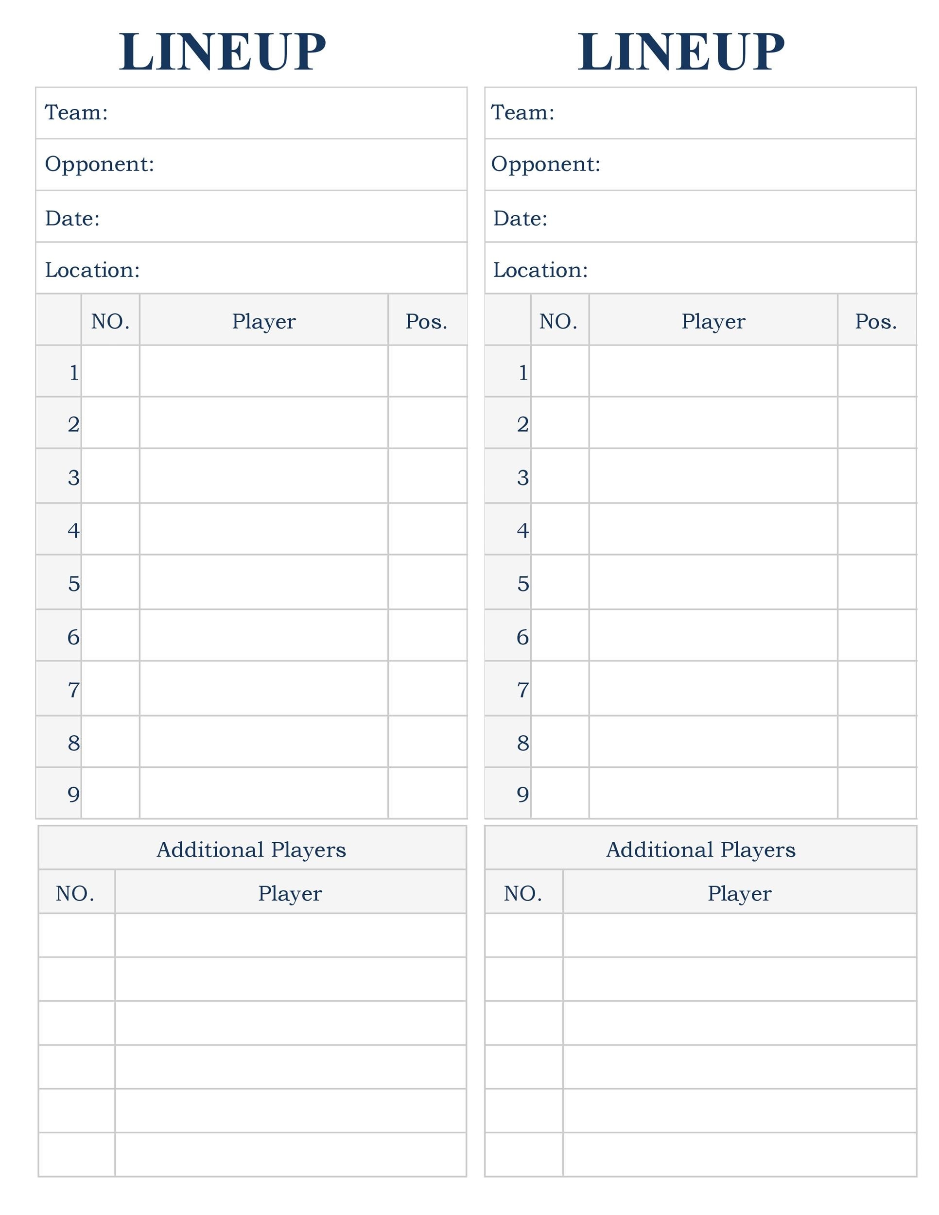 Free Printable Baseball Lineup Template – An adaptable and customizable file or design, known as a printable template, can be used for a variety of purposes. They are often readily available in digital formats, permitting easy printing or online sharing.