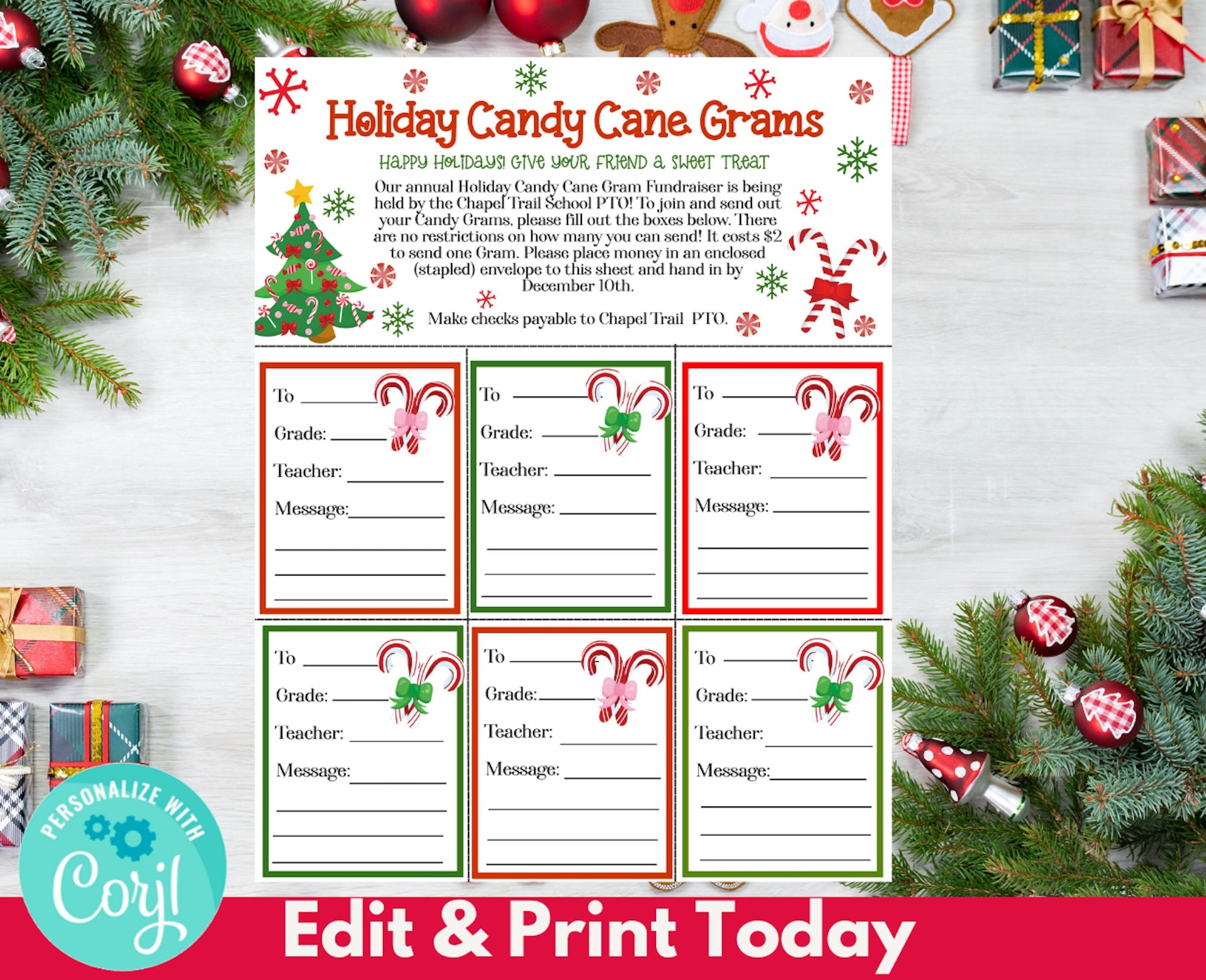 Christmas Candy Cane Gram Flyer Holiday Candy Gram Fundraiser Santa Pto Pta School Church Fall Fundraiser Xmas Printable EDITABLE TEMPLATE Etsy