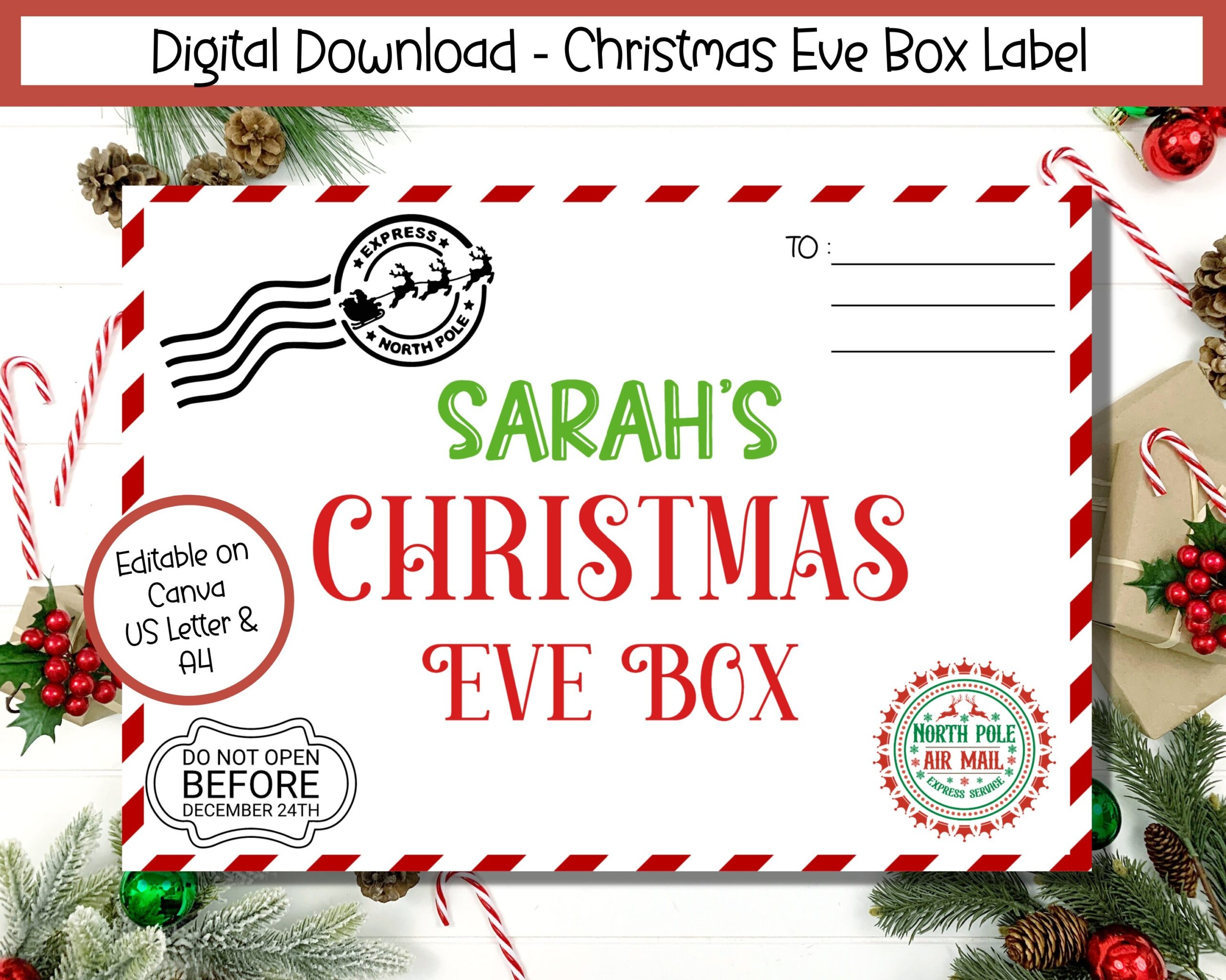 EDITABLE Christmas Eve Box Label Printable Christmas Eve Box Sign Night Before Christmas Delivery Box Christmas Eve Box Accessories Etsy