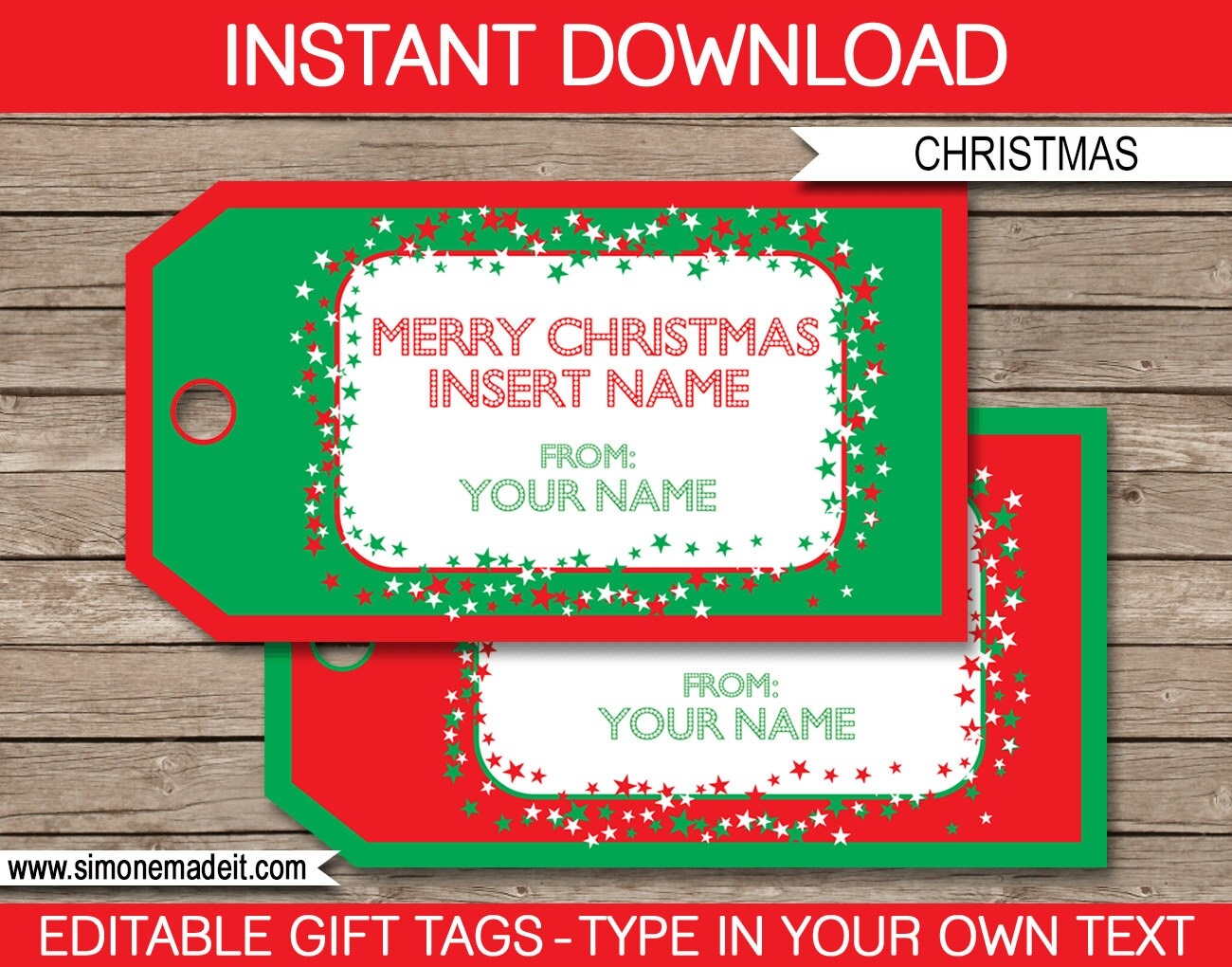 Christmas Printable Gift Tags Template Editable Text
