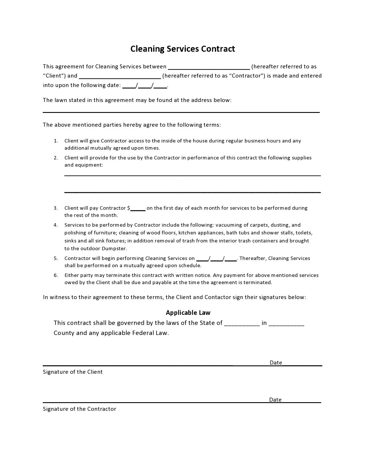 Free Printable Cleaning Contract Template Word
