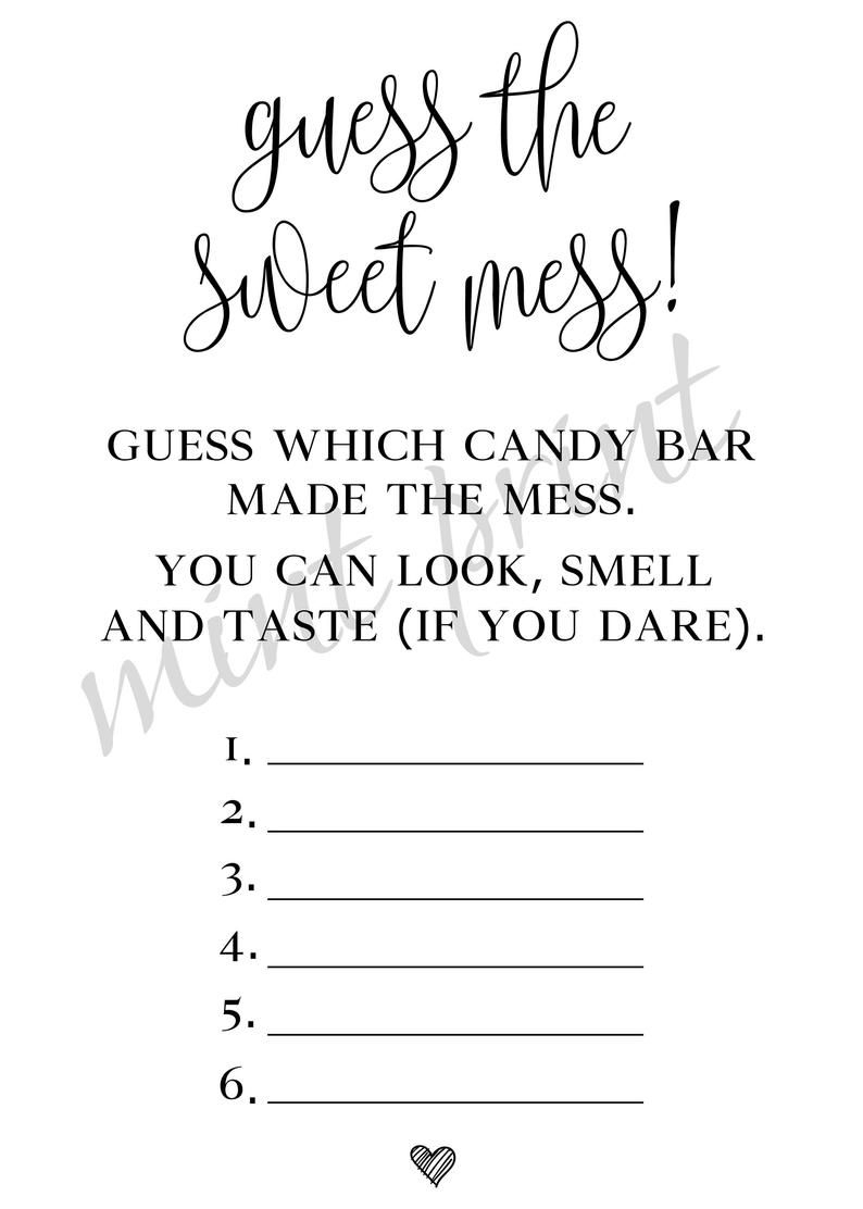 Guess The Sweet Mess Baby Shower Game Guess The Mess Template Diaper Candy Bar Guessing Game Poopy Diaper Game Chocolate Bars Printable Etsy Baby Shower Candy Bar Game Baby Shower