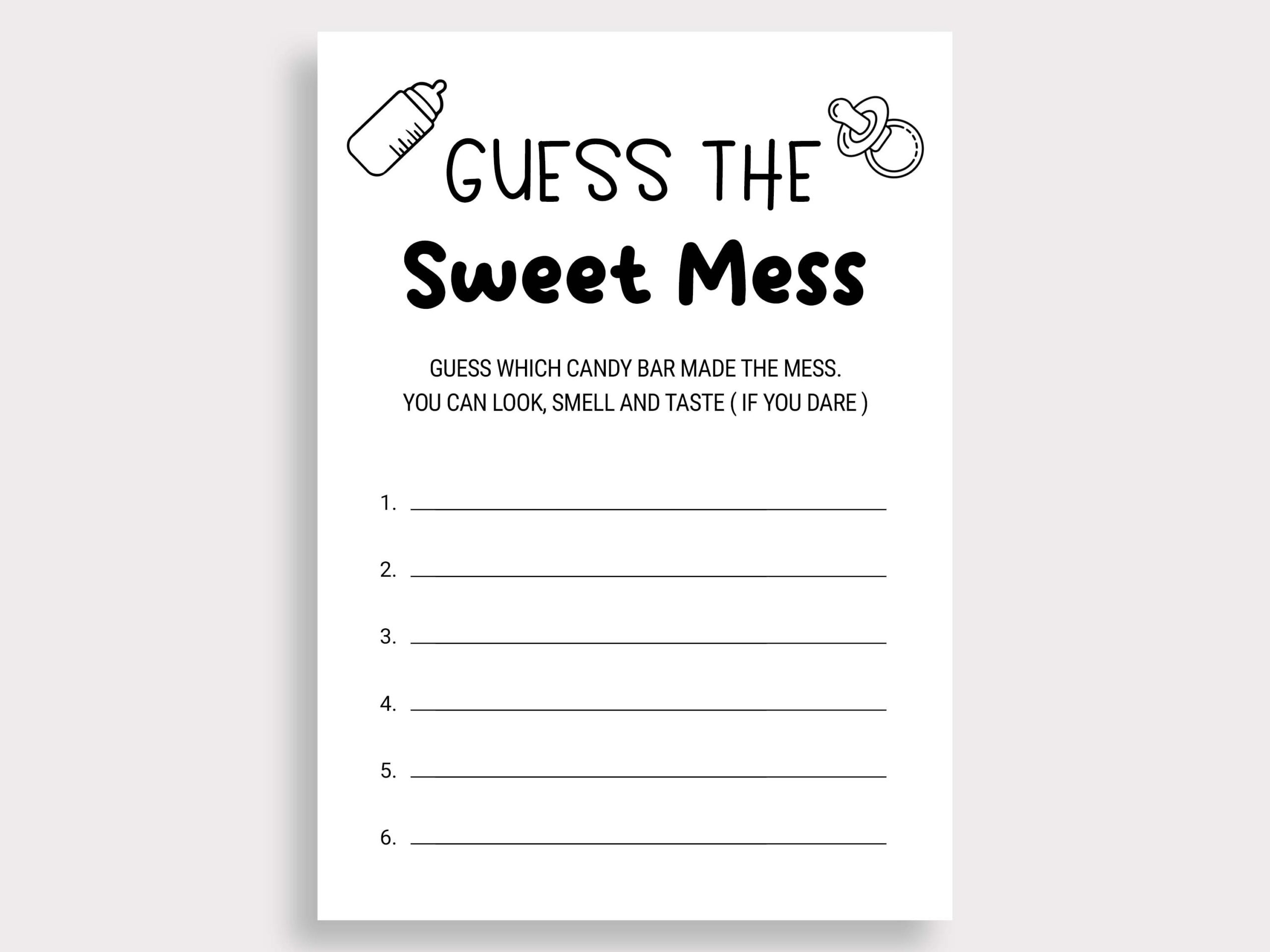 Guess The Sweet Mess Game Candy Bar Game Dirty Diaper Game Baby Shower Poopy Diaper Game Printable Gender Neutral Baby Shower Digital J16 Etsy
