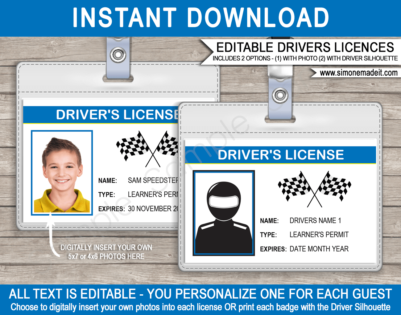 Race Car Drivers License Template For Kids Printable Party Decorations