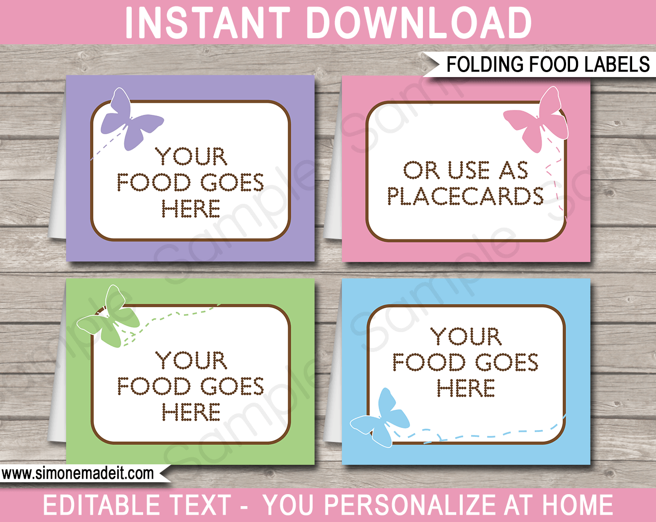 Butterfly Party Food Labels Place Cards Printable Editable Template