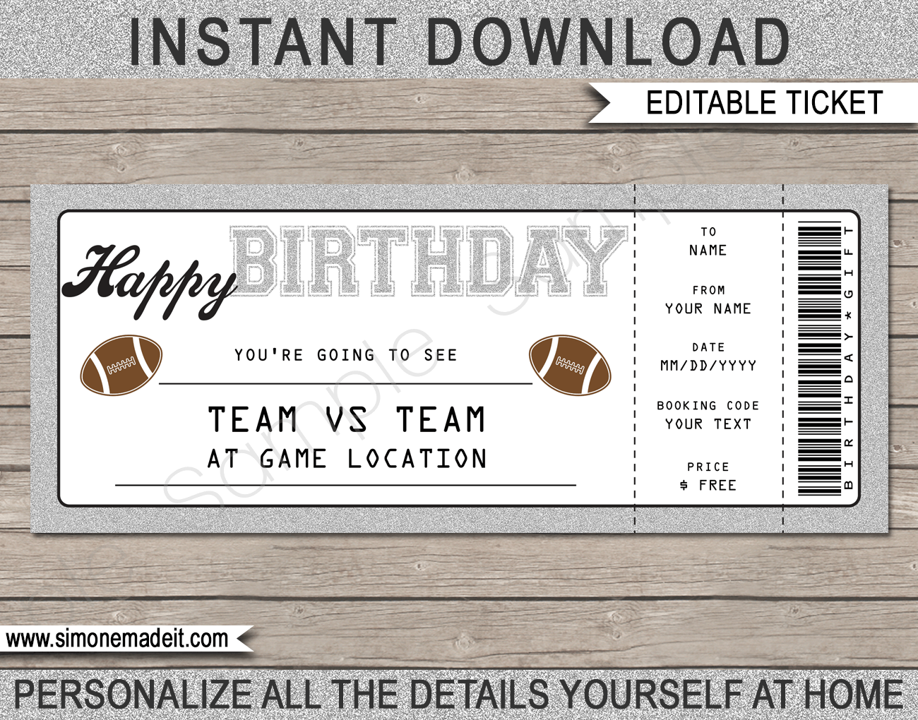 Printable And Editable Football Tickets Adobe PDF Surprise Game Tickets Stub Birthday Present Custom DIY Surprise Gift Idea Party Sports Etsy Football Ticket Game Tickets Football Ticket Invitations