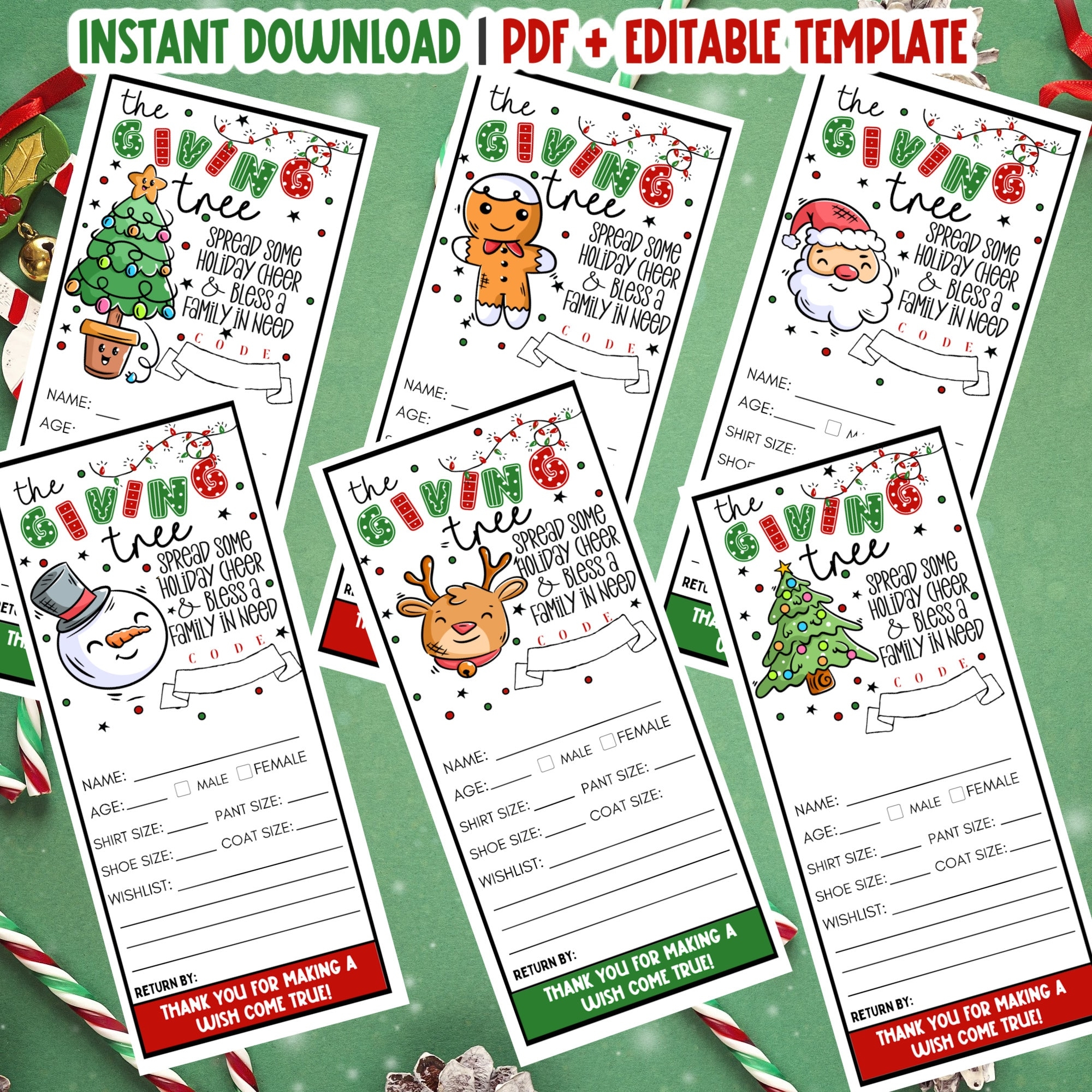 EDITABLE Giving Tree Gift Tags Christmas Giving Tree Fundraiser Form Angel Tree Gift Tag Form Giving Tree Tags DIY With Corjl CF17 Etsy