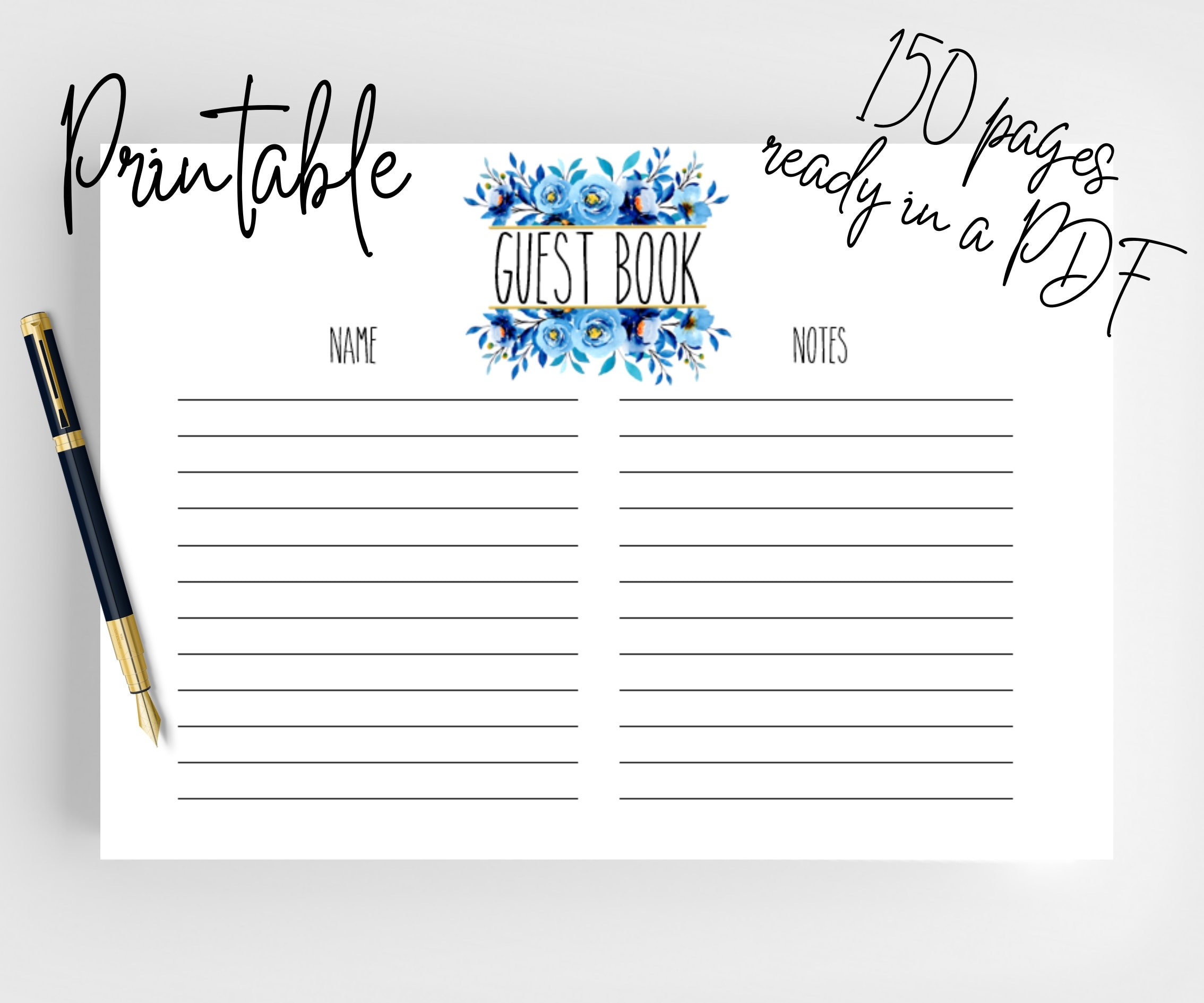 Printable Wedding Guest Book Pages Wedding Guest Book Guest Book Printable Template Instant Download Pdf File Blue Flowers Blue Wedding Etsy