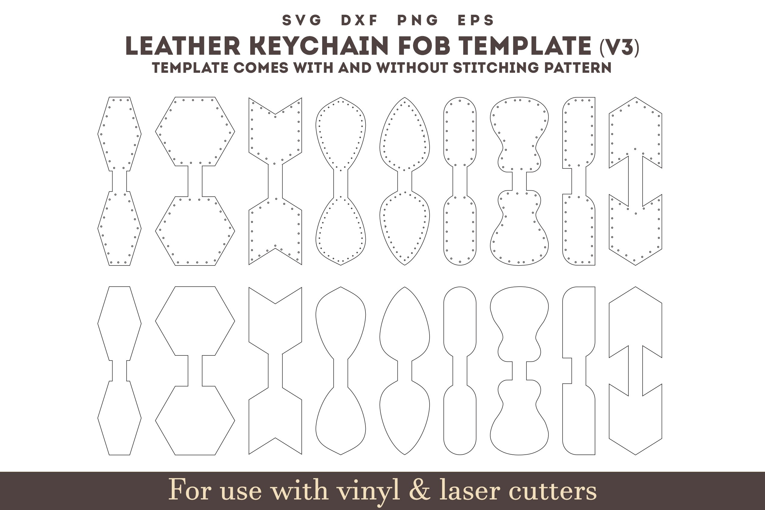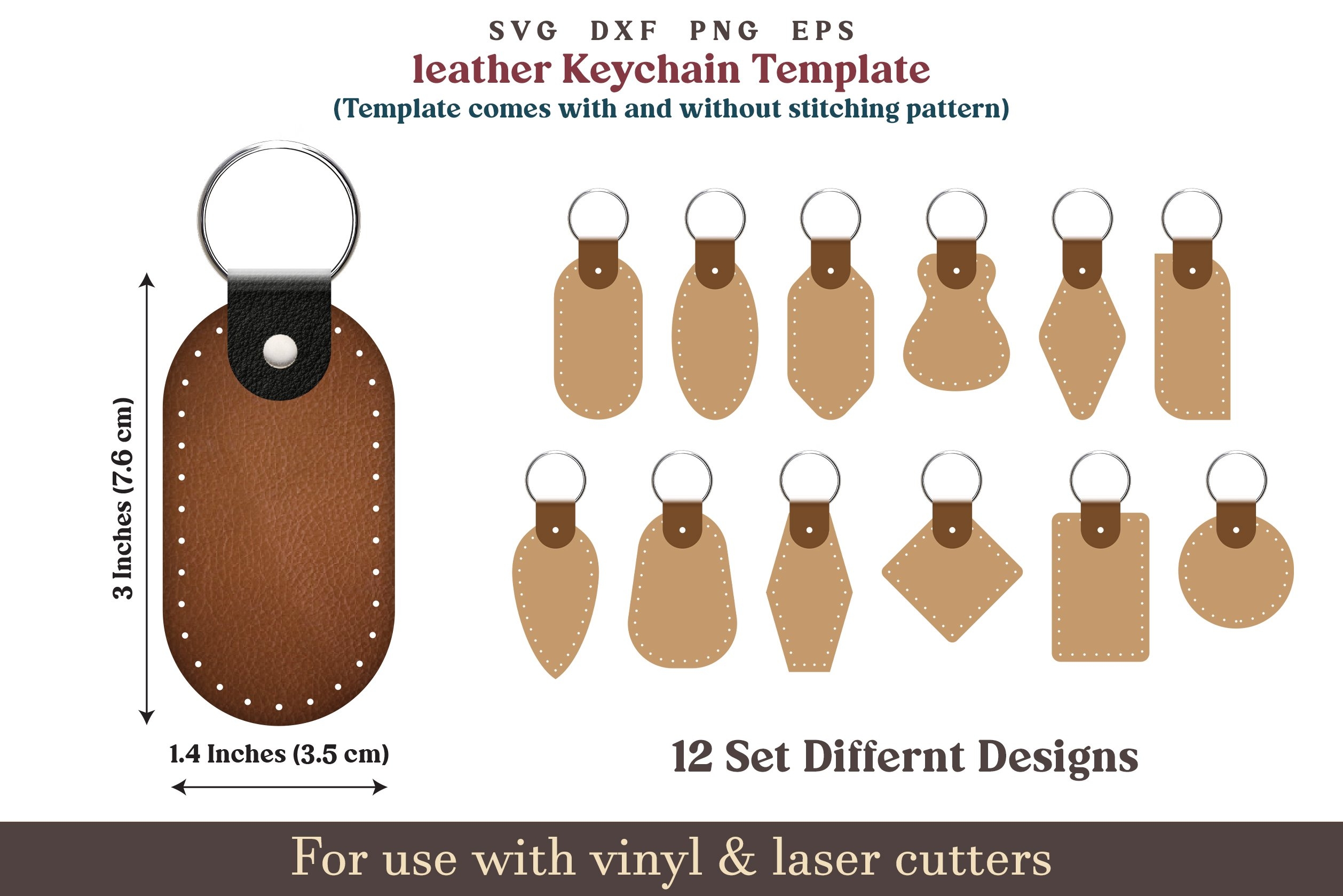 Leather Keychain Template SVG 12 Set Key Fob Pattern Bundle