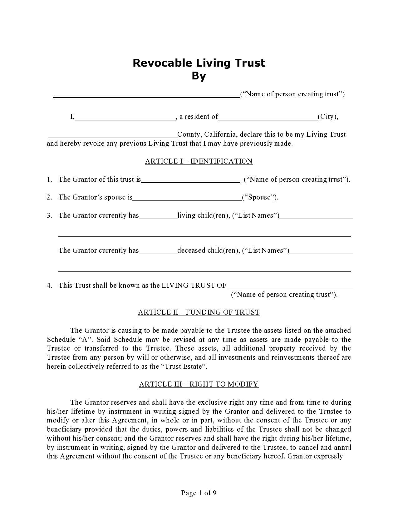 Free Revocable Living Trust Form PDF Word Template LawDistrict
