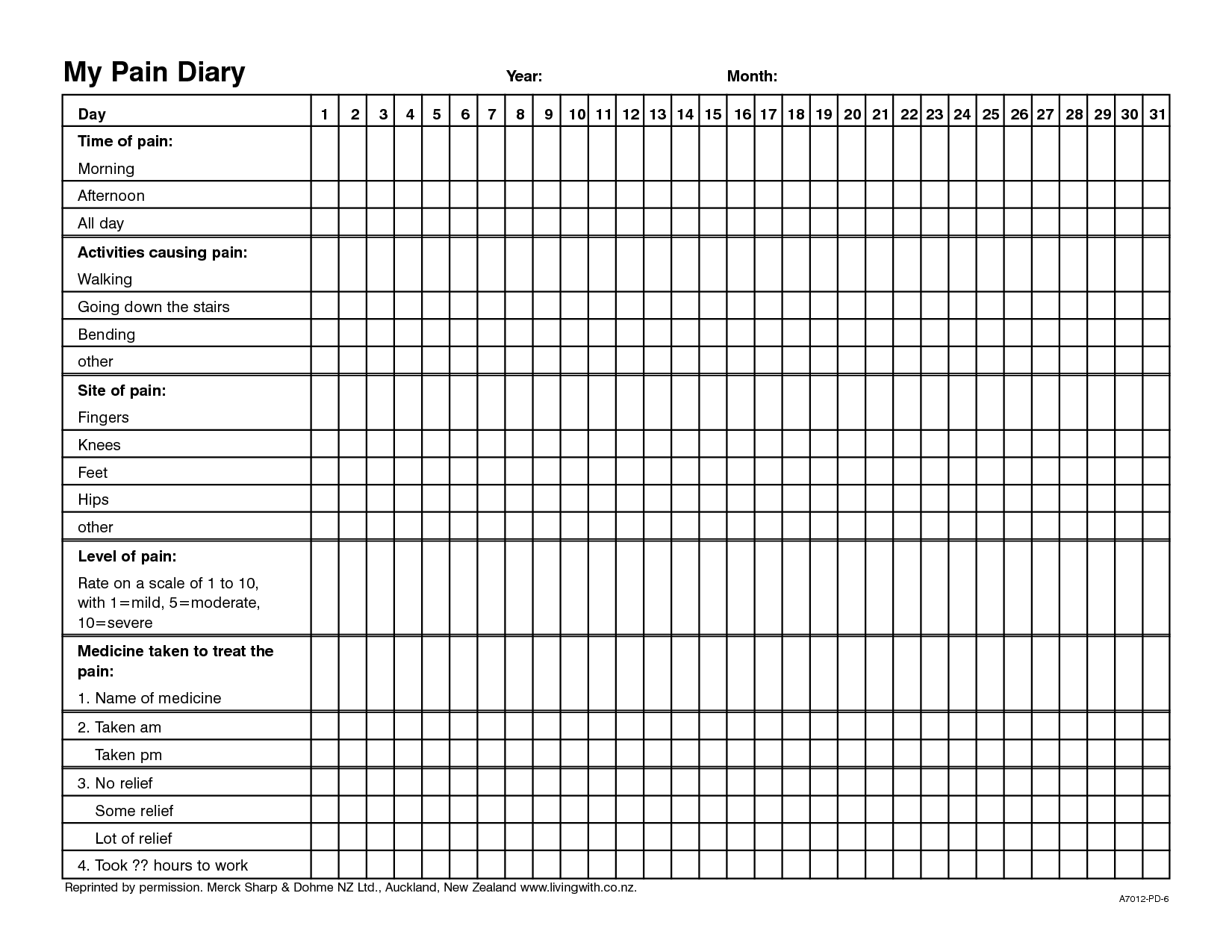 Free Printable Pain Diary Template