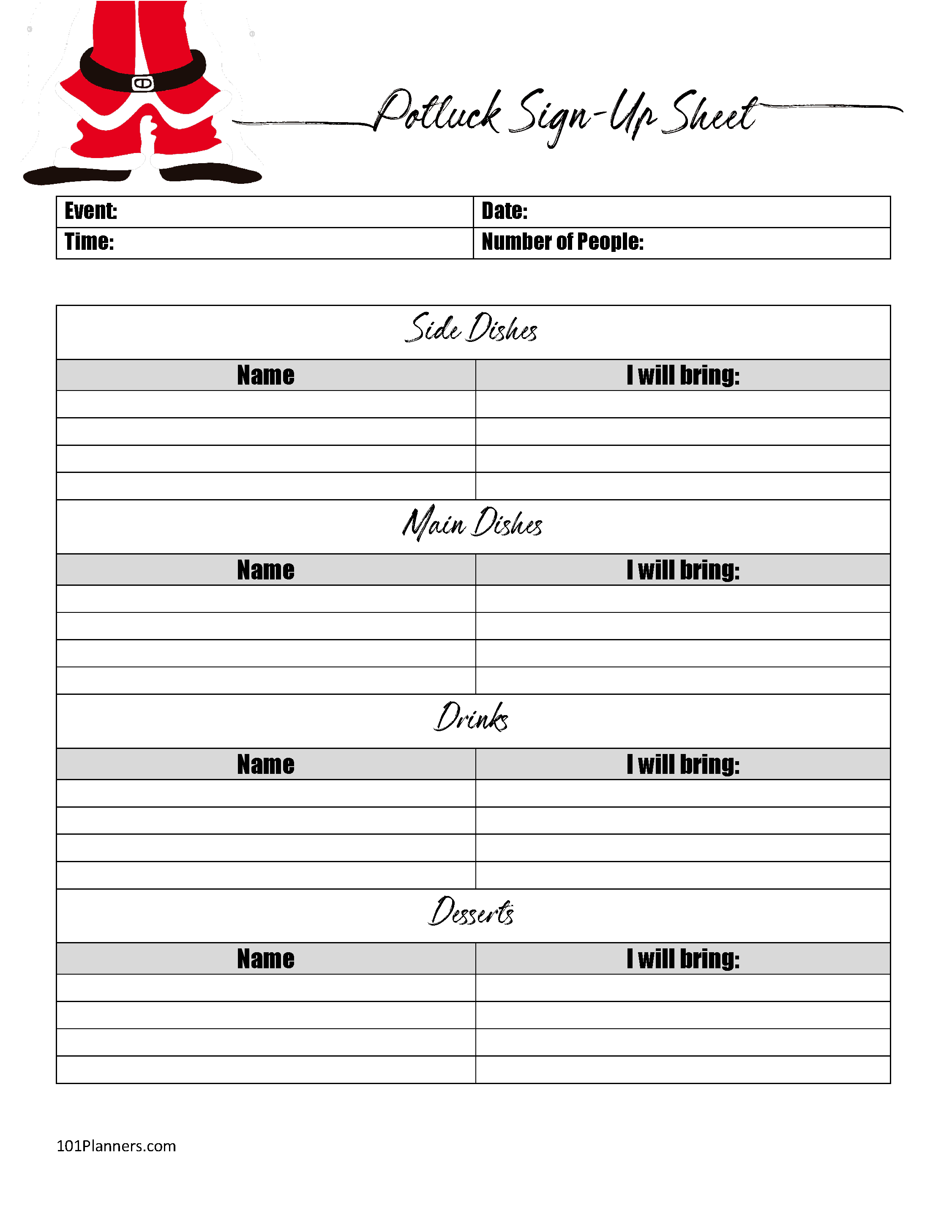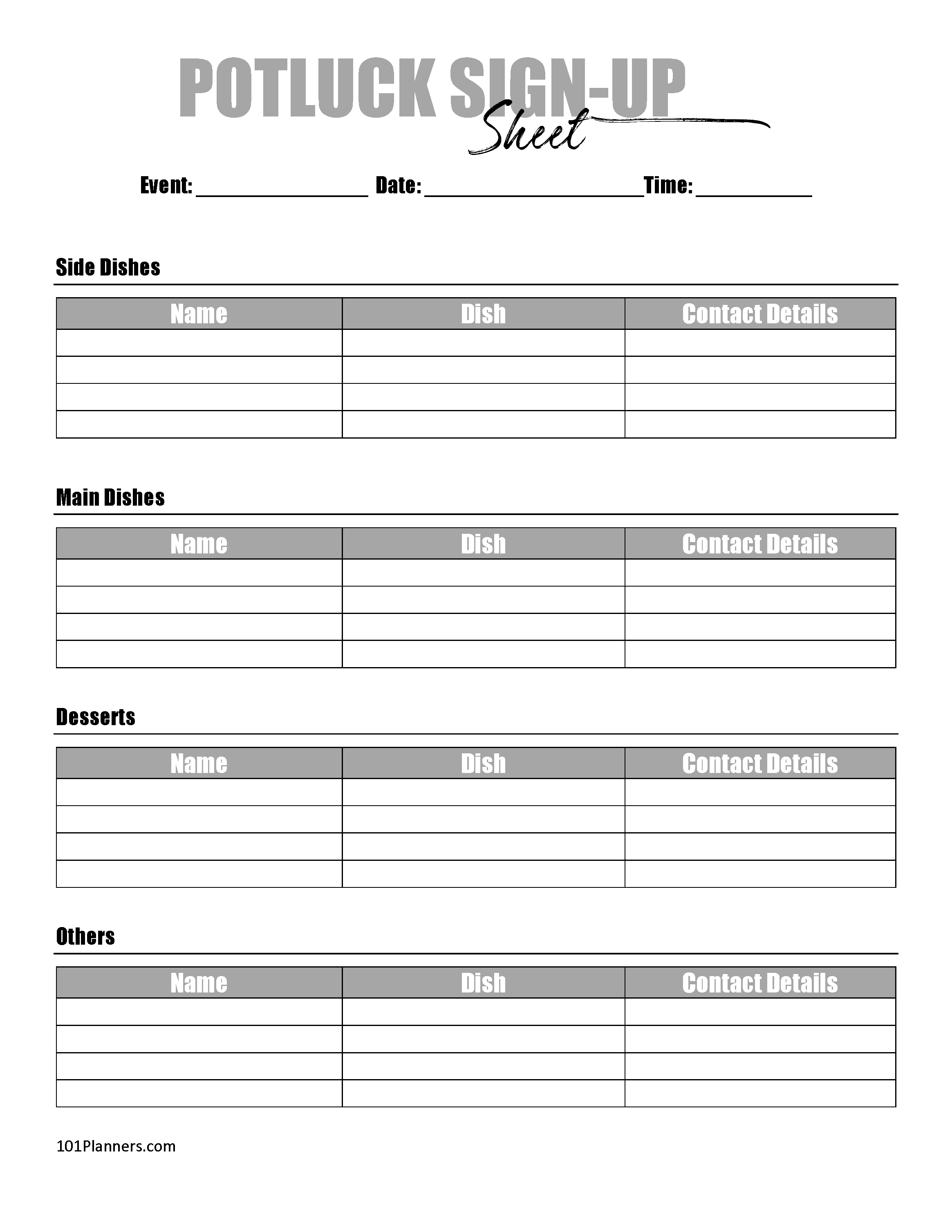 Free Printable Potluck Sign Up Sheet Template Word – An adaptable and personalized file or design, referred to as a printable template, can be utilized for a range of functions. They are often available in digital formats, permitting simple printing or online sharing.