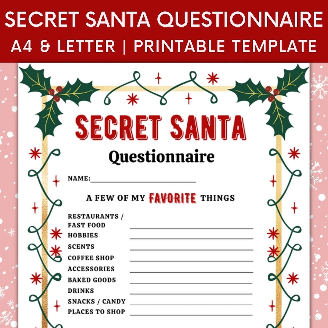 Printable Secret Santa Questionnaire For Christmas Gift Exchange Questions Work Secret Santa My Favorite Things Christmas Wish List Etsy Canada Secret Santa Work Secret Santa Secret Santa Christmas Gifts