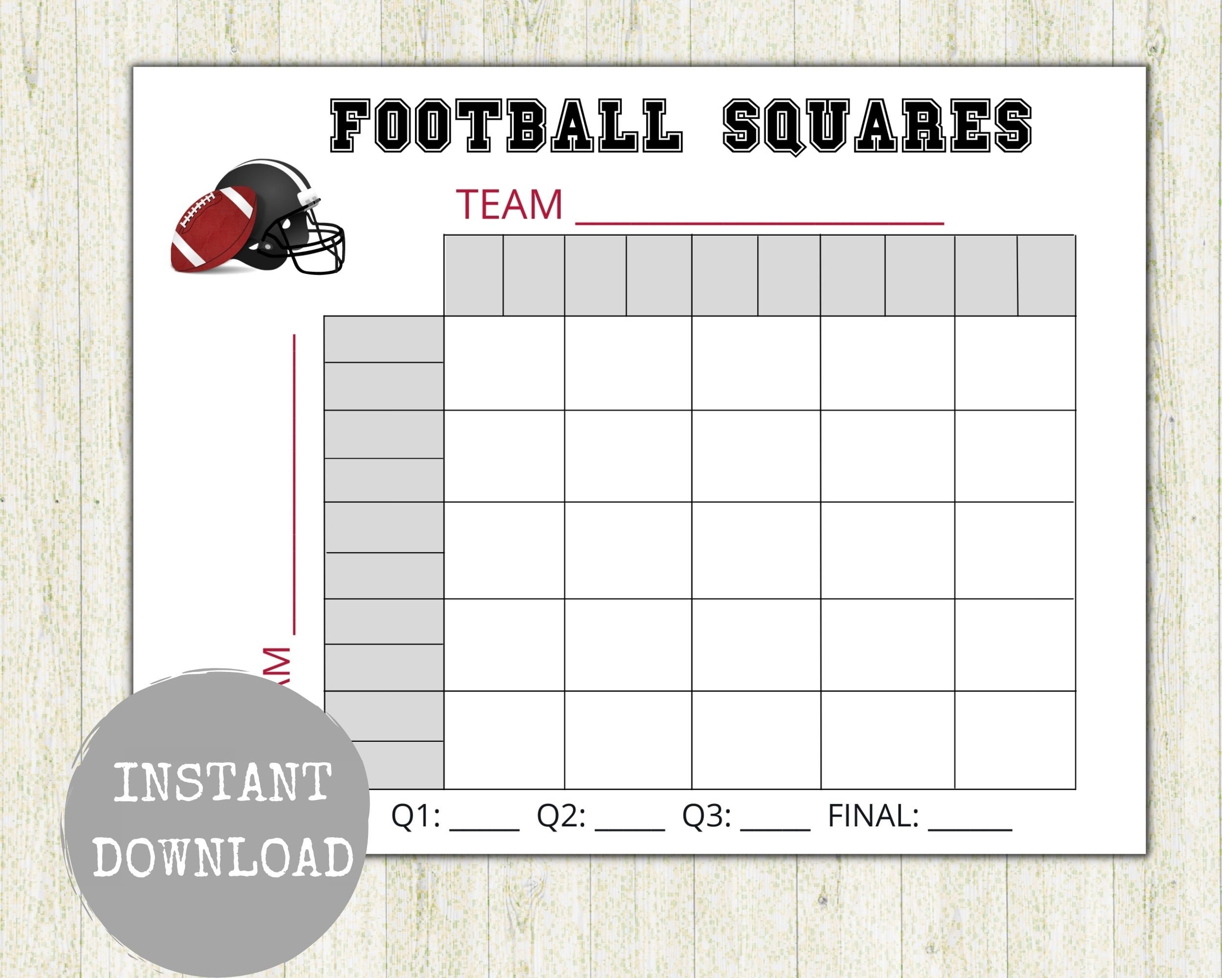 Super Bowl 25 Squares Template Printable Football Pool Super Bowl Pool Superbowl Squares