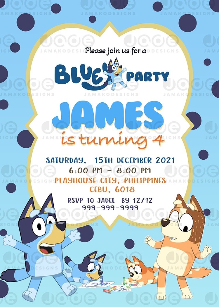 FREE Invitations Bluey Birthday Invitations Party Ideas Birthday Invitations Birthday Card Template Birthday Party Invitations