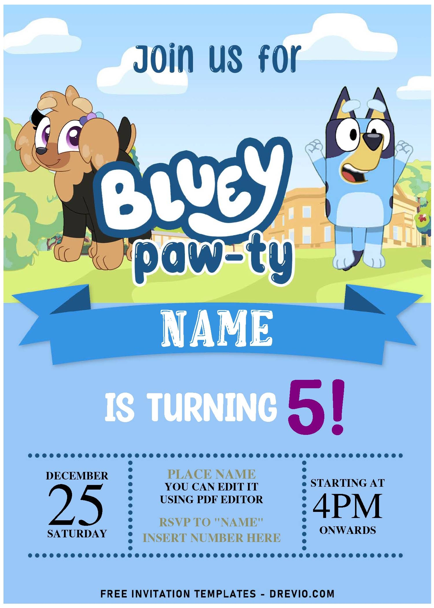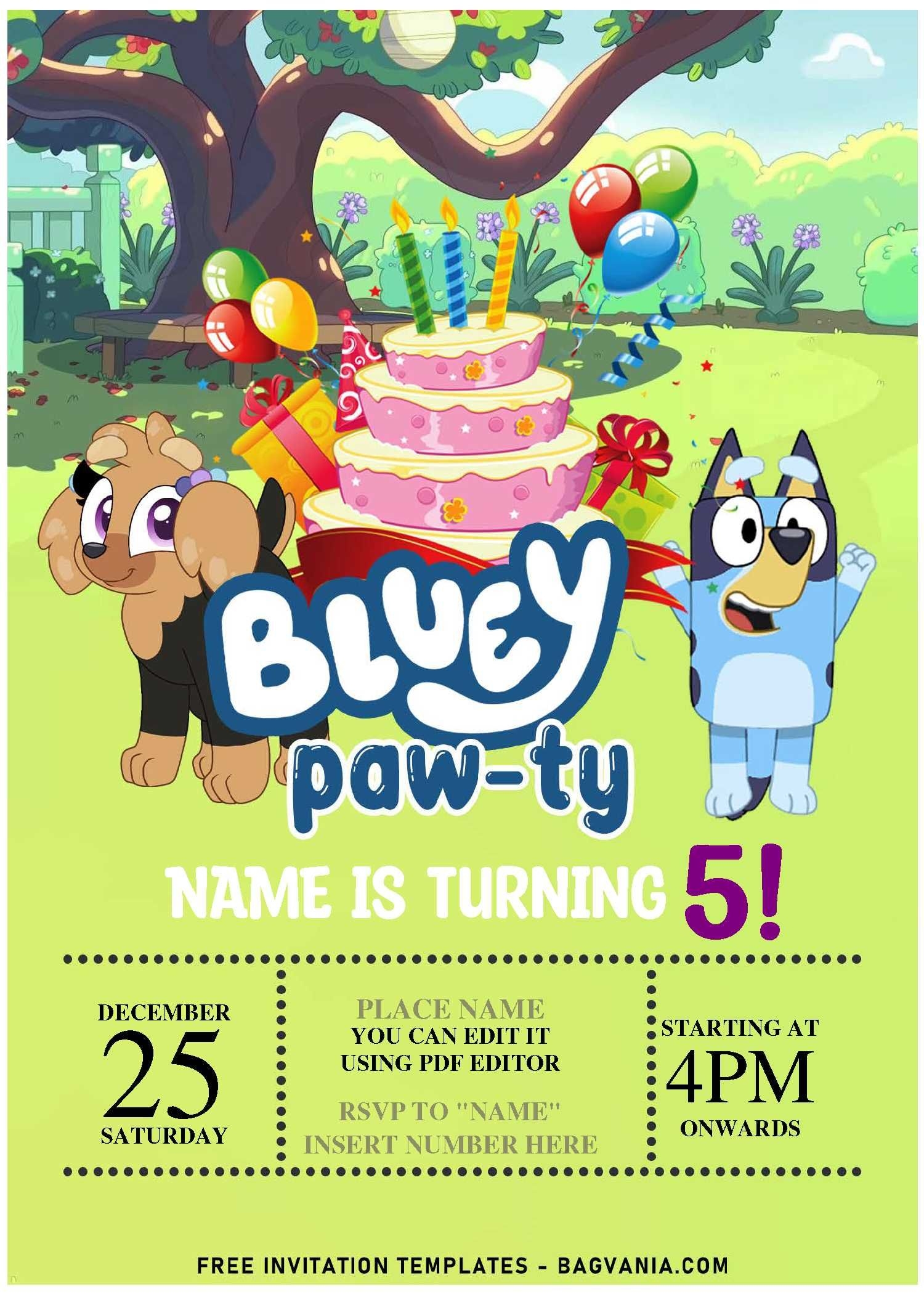 Free Editable PDF Cheerful Bluey Birthday PAW TY Invitation Templates Download Hundreds FREE PRINTABLE Birthday Invitation Templates