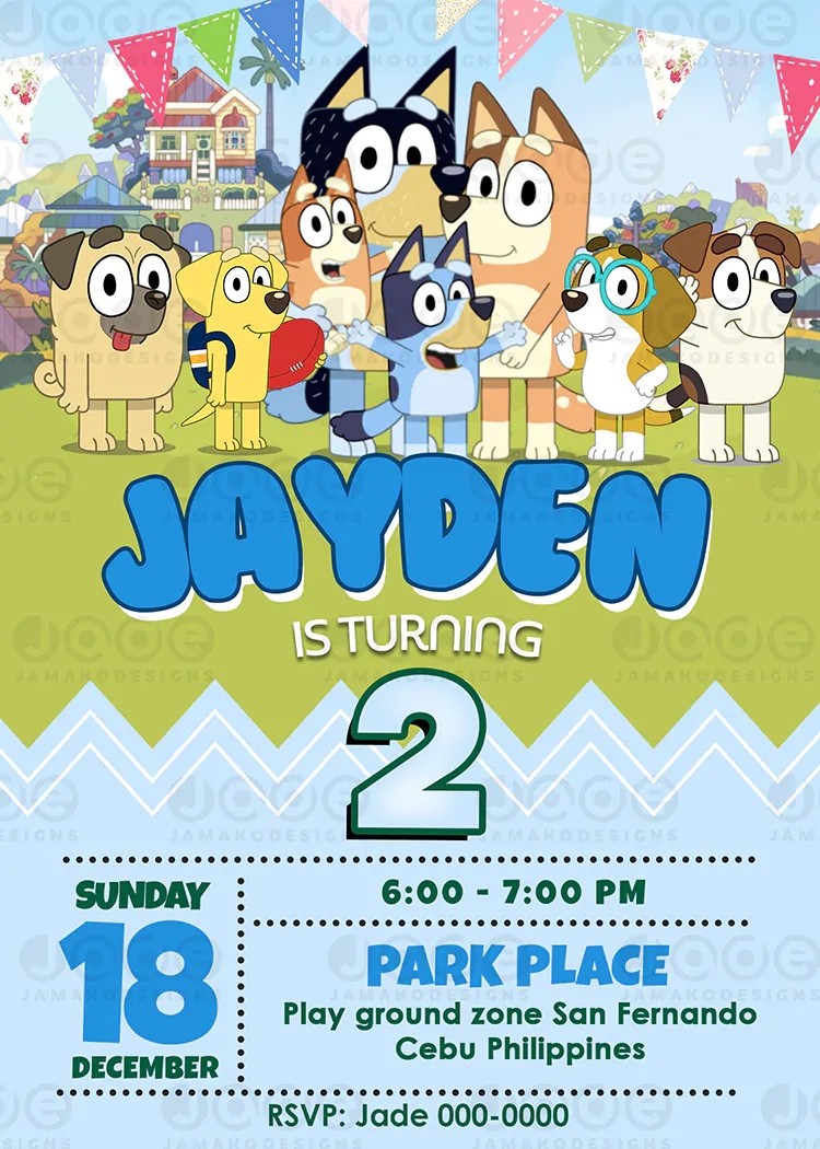 Bluey Custom Birthday Invitations Template 4 X 6 Or 5 X 7 Free Backside