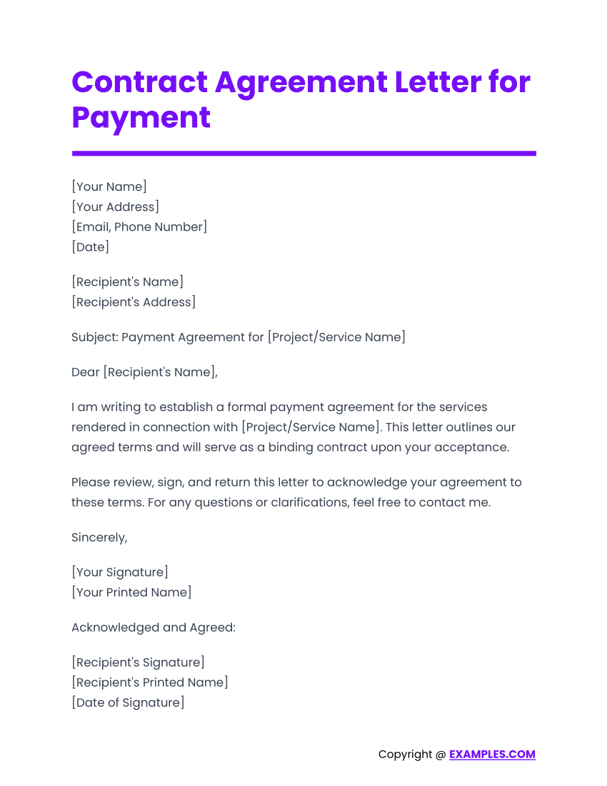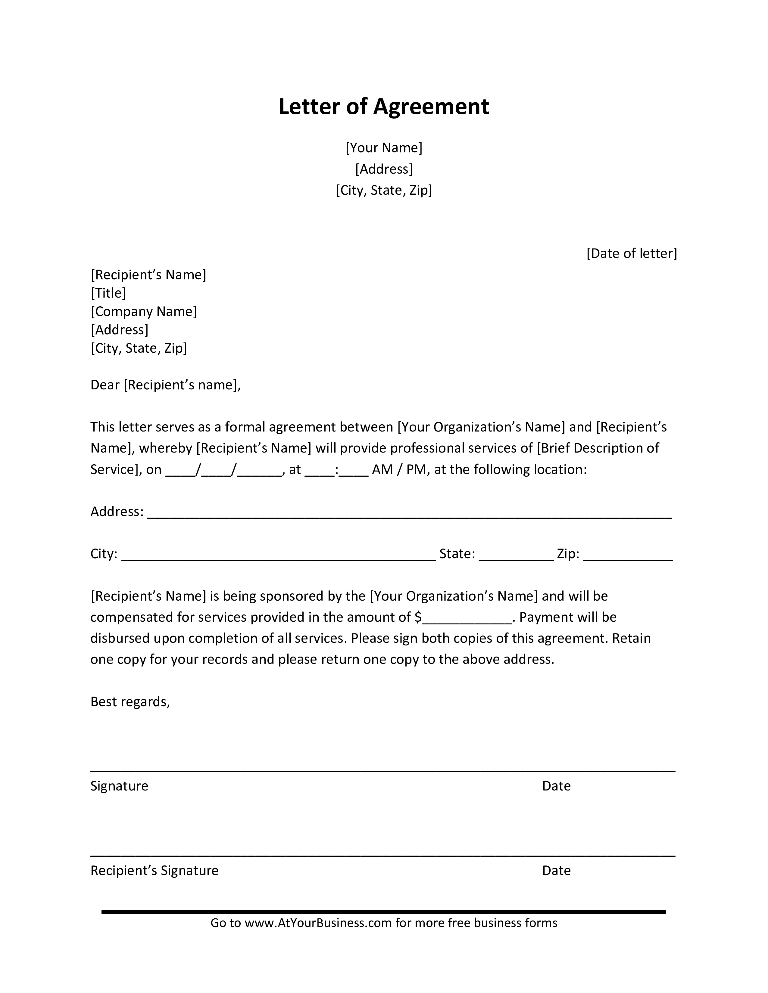 Free Printable Letter Of Agreement Templates Word PDF For Payment