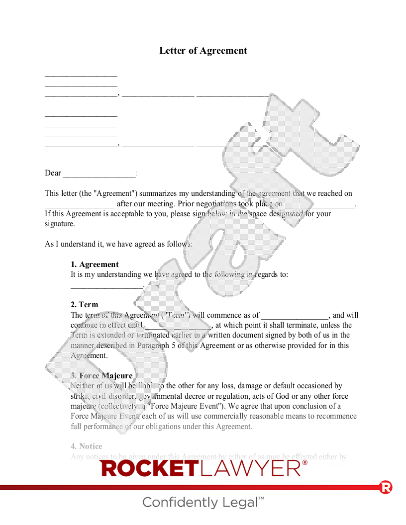 Free Letter Of Agreement Make Download Rocket Lawyer