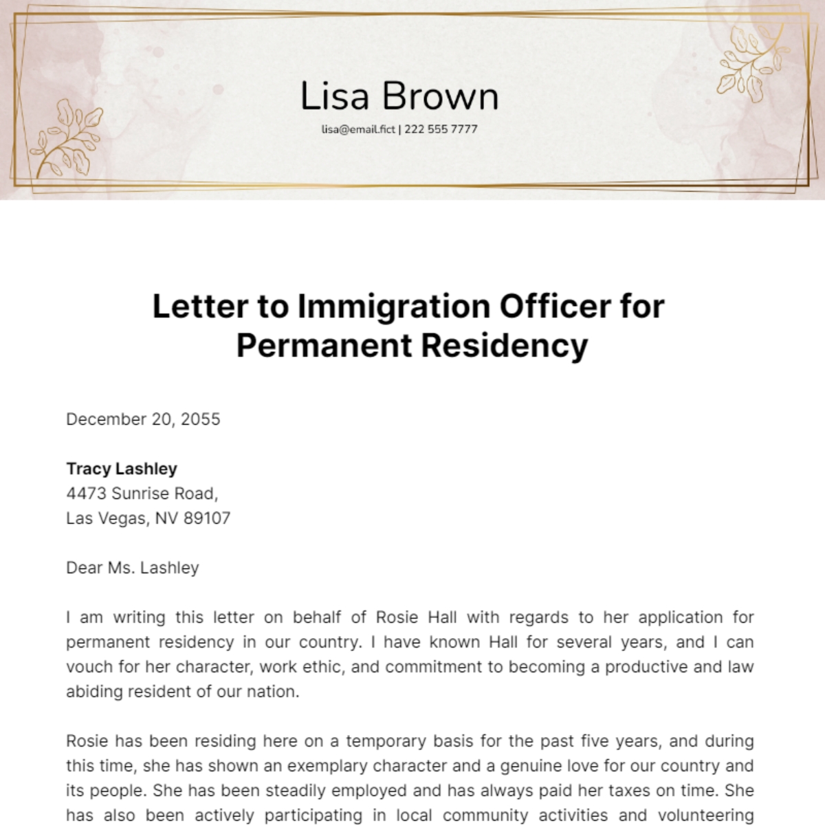 Letter To Immigration Officer For Permanent Residency Template Edit Online Download Example Template