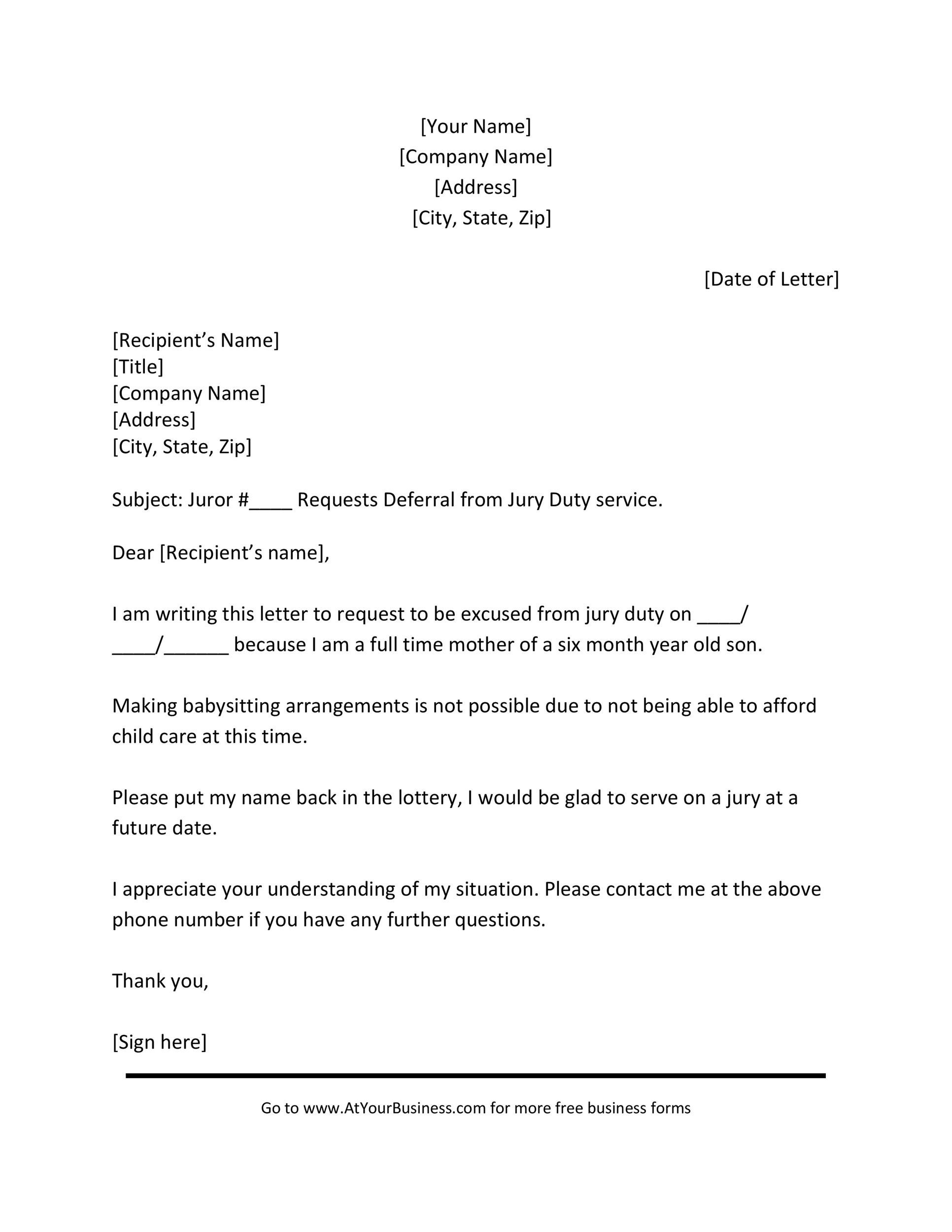 Jury Duty Childcare Excuse Letter