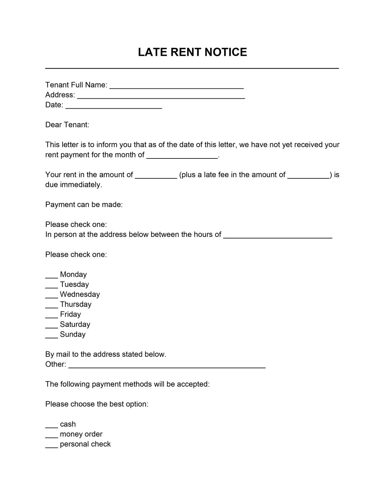 Late Rent Notice Template