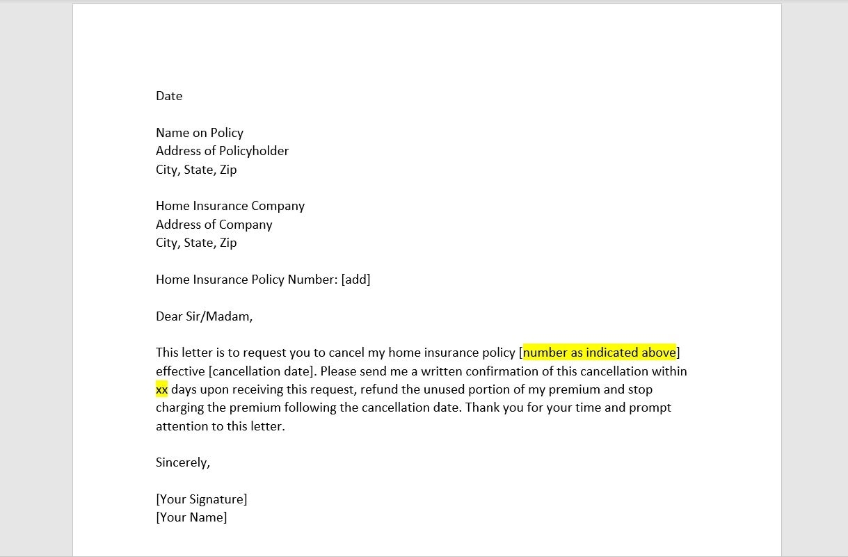 Home Insurance Cancellation Letter Home Insurance Cancellation Letter Template Insurance Cancellation Letter Word Template Simple Letter Etsy