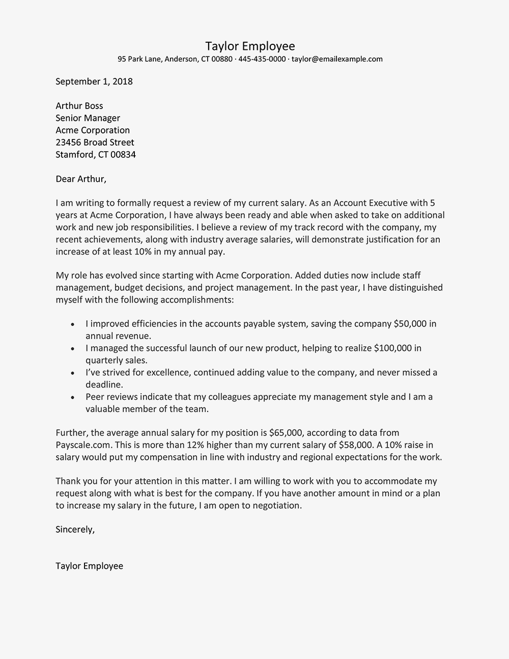 Letter For Salary Increase To Employer