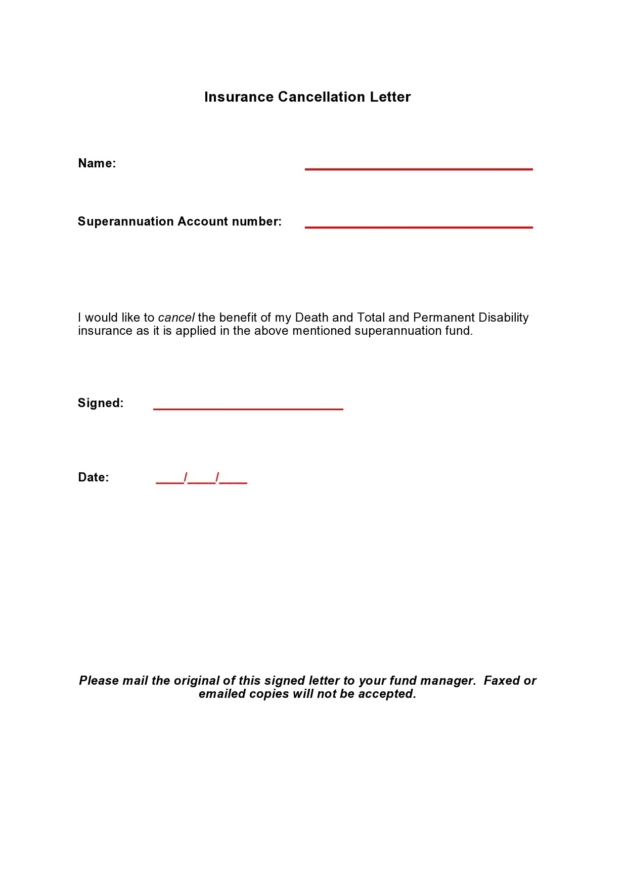 Free Printable Insurance Cancellation Letter Templates PDF Word