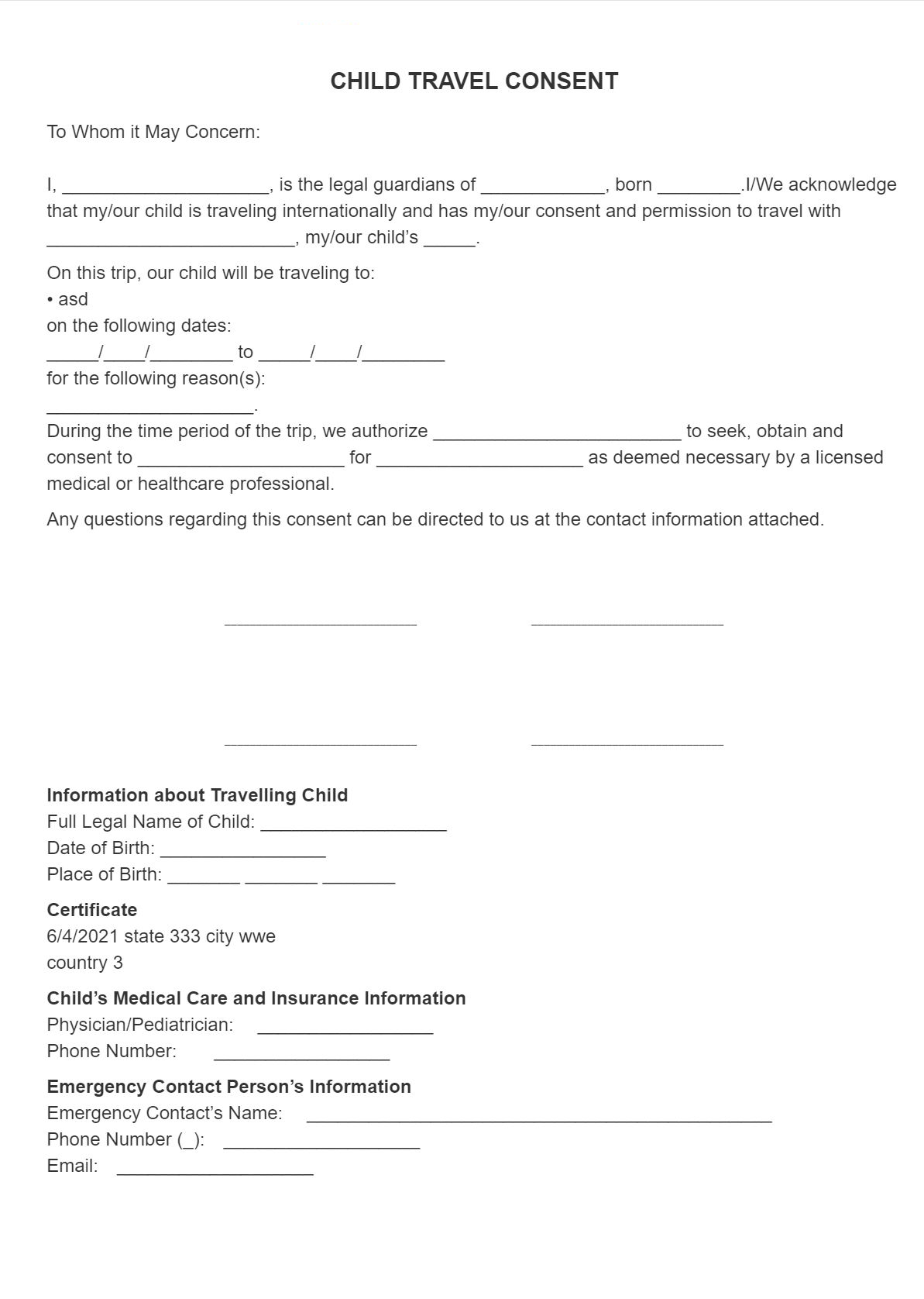 Letter Of Consent For Child To Travel With Grandparents Pdf
