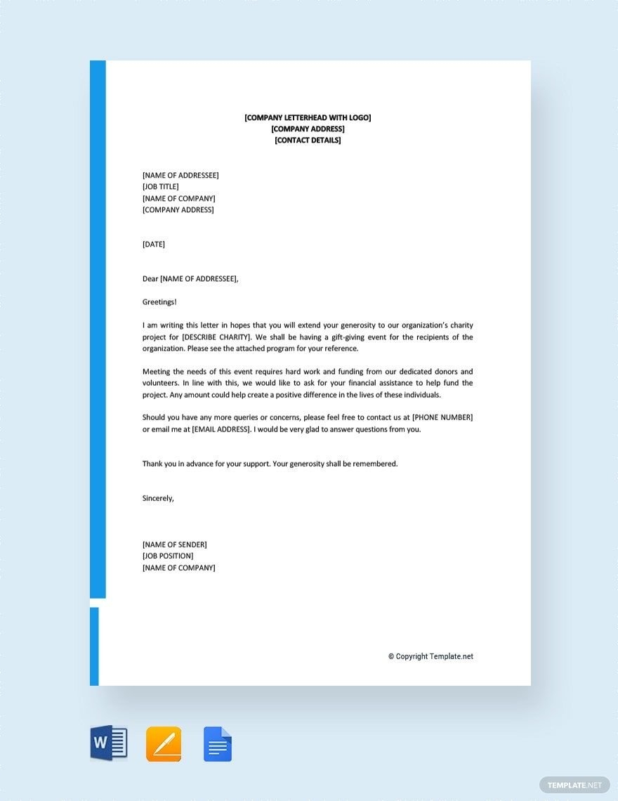 Solicitation Letter For Financial Support In Google Docs Pages Word PDF Download Template